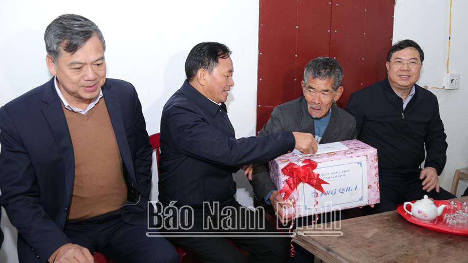Cùng đi có các đồng chí: Nguyễn Phùng Hoan, Ủy viên Ban TVTU, Phó Chủ tịch Thường trực HĐND tỉnh; Trần Lê Đoài, TUV, Phó Chủ tịch UBND tỉnh; lãnh đạo Ủy ban MTTQ tỉnh, Sở Lao động - Thương binh và Xã hội, Công an tỉnh, Văn phòng Tỉnh ủy, lãnh đạo huyện Nghĩa Hưng.