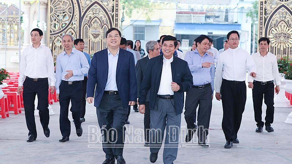 | Đồng chí Phạm Gia Túc, Ủy viên BCH Trung ương Đảng, Bí thư Tỉnh ủy tham quan giáo xứ Đại Đồng, xã Giao Lạc (Giao Thủy). |