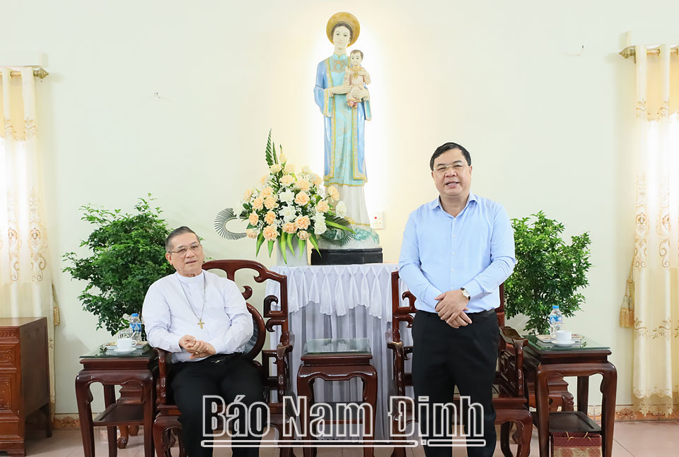 Trong không khí gần gũi, thân tình, đồng chí Bí thư Tỉnh ủy Phạm Gia Túc nhấn mạnh, thời gian qua, tình hình thế giới, khu vực có nhiều diễn biến phức tạp làm ảnh hưởng không nhỏ đến tăng trưởng kinh tế của cả nước nói chung, tỉnh ta nói riêng. Tuy nhiên, được sự quan tâm của Trung ương; sự lãnh đạo, chỉ đạo tập trung, quyết liệt, linh hoạt của Tỉnh ủy, HĐND, UBND tỉnh; sự đồng thuận của các tầng lớp nhân dân và các chức sắc, tín đồ tôn giáo nên kinh tế - xã hội của tỉnh vẫn phát triển khá. Tổng sản phẩm (GRDP) 6 tháng đầu năm 2023 của tỉnh tăng trưởng 8,5%, đứng thứ 6/63 tỉnh, thành trên toàn quốc, đứng thứ 3 vùng đồng bằng sông Hồng. Tỉnh đang tập trung đẩy mạnh xây dựng hạ tầng giao thông; xây dựng các khu, cụm công nghiệp để thu hút đầu tư, tạo xung lực phát triển mới. Đến nay, tuyến đường bộ ven biển đi qua địa bàn tỉnh; đường trục phát triển nối vùng kinh tế biển của tỉnh với đường cao tốc Cầu Giẽ - Ninh Bình đã cơ bản hoàn thành; tuyến đường bộ mới Nam Định - Lạc Quần - Đường bộ ven biển đã khởi công; tuyến cao tốc kết nối các tỉnh Ninh Bình - Nam Định - Thái Bình ra Hải Phòng, Quảng Ninh đang được khảo sát để sớm thực hiện. Cùng với đó, tỉnh chú trọng thu hút đầu tư đối với các doanh nghiệp lớn, công nghệ cao, thân thiện với môi trường nhằm tạo sự bứt phá trong phát triển kinh tế - xã hội của tỉnh. Công tác xây dựng nông thôn mới nâng cao, kiểu mẫu; các hoạt động văn hóa - xã hội; bảo đảm quốc phòng - an ninh tiếp tục được quan tâm xây dựng, thực hiện tốt, góp phần không ngừng nâng cao đời sống vật chất, tinh thần cho nhân dân…