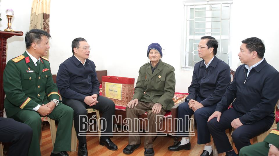 Đồng chí Bí thư Tỉnh ủy đã thăm, tặng quà ông Vũ Năng Hùng, sinh năm 1932, nguyên Phó Chủ nhiệm Chính trị Sư đoàn 347, Quân đoàn 14, hiện đang ở số nhà 487 đường Trần Nhân Tông (thành phố Nam Định); ông Trần Thế Lưu, sinh năm 1932, là thương binh có hoàn cảnh khó khăn ở tổ dân phố 9, phường Lộc Vượng (thành phố Nam Định); thăm, tặng quà ông Nguyễn Quang Bảo, nguyên Tiểu đội trưởng, Đại đội 20, Tiêu đoàn 3, Sư đoàn 351, Điện Biên Phủ, hiện đang ở Phố Cầu, xã Nam Hùng (Nam Trực).
