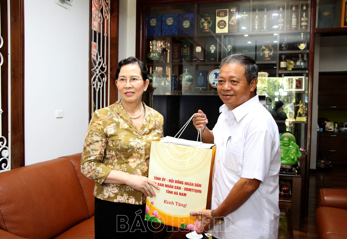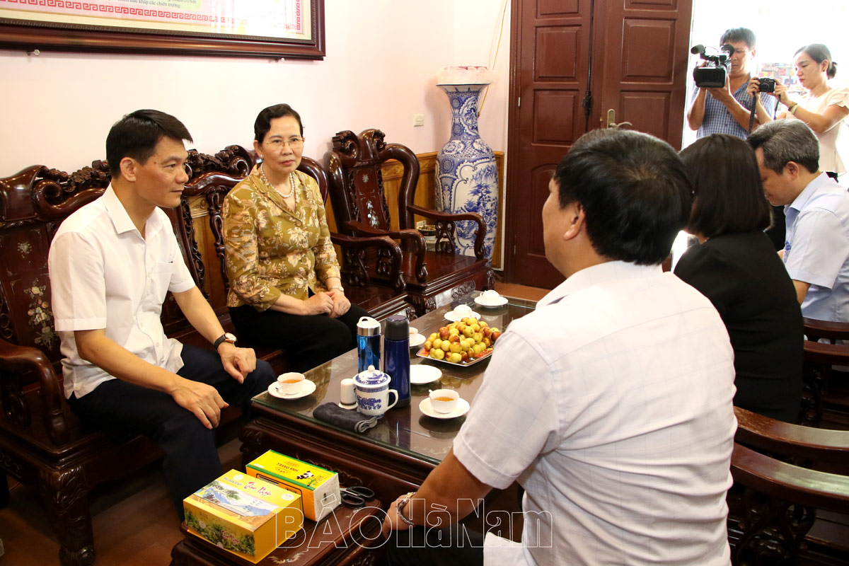 Sáng 28/8, đồng chí Lê Thị Thủy, Ủy viên Trung ương Đảng, Bí thư Tỉnh ủy, Chủ tịch HĐND tỉnh đã đến thăm và chúc Tết Độc lập các đồng chí nguyên cán bộ chủ chốt của tỉnh qua các thời kỳ. Cùng đi có các đồng chí: Nguyễn Đức Toàn, Ủy viên Ban Thường vụ Tỉnh ủy, Bí thư Thành ủy Phủ Lý, lãnh đạo Văn phòng Tỉnh ủy; Sở Lao động- Thương binh và Xã hội.