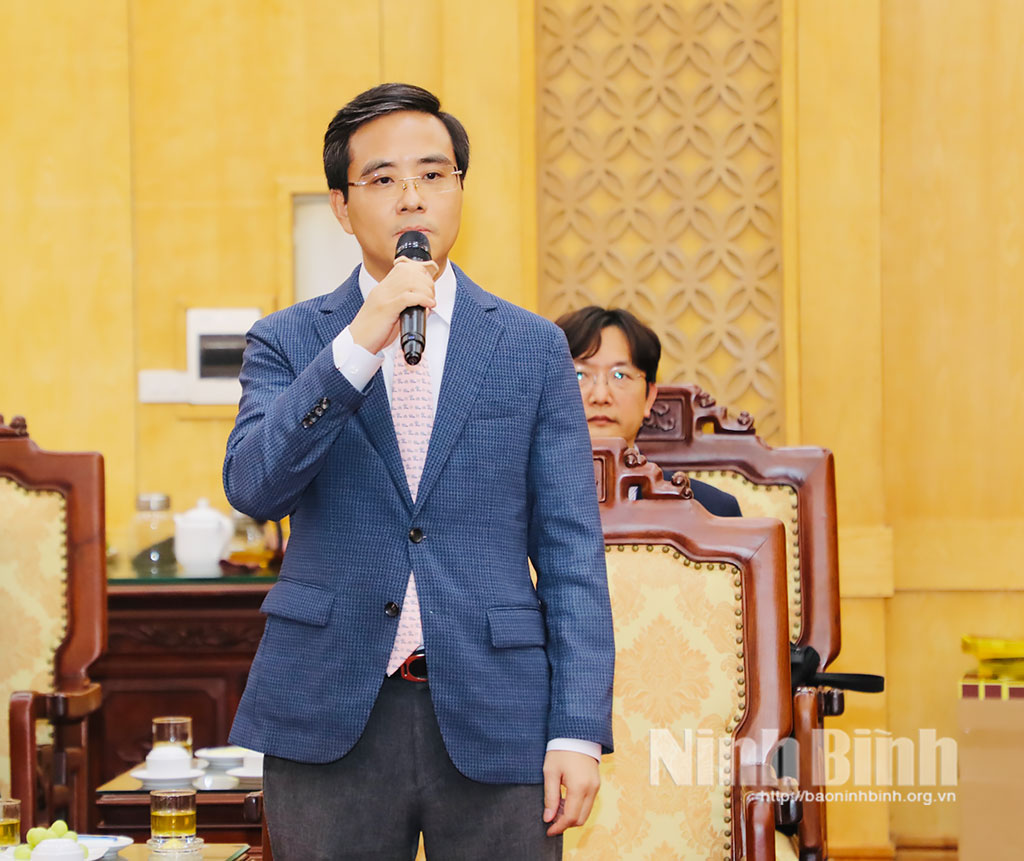 Cùng tham gia tiếp đoàn, có các đồng chí: Nguyễn Thanh Bình, Phó Bí thư Tỉnh ủy, Chủ tịch UBND tỉnh; Nguyễn Thành Công, đại biểu Quốc hội tỉnh Ninh Bình khoá XVI, Ủy viên Ủy ban Kinh tế và Tài chính của Quốc hội; các đồng chí Ủy viên Ban Thường vụ Tỉnh ủy; lãnh đạo UBND tỉnh; lãnh đạo các sở, ban, ngành liên quan.