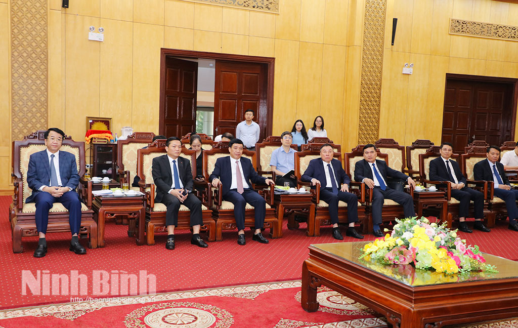 Thông tin tới Đoàn công tác, lãnh đạo tỉnh cho biết, sau khi hợp nhất, tỉnh Ninh Bình có nhiều tiềm năng trong phát triển kinh tế. Ninh Bình đang duy trì tốc độ tăng trưởng kinh tế ấn tượng; GRDP năm 2025 đạt 10,65%, đứng trong nhóm dẫn đầu cả nước, quy mô nền kinh tế đạt khoảng 13 tỷ USD, cùng những kết quả ấn tượng về thu ngân sách, xuất nhập khẩu và giải ngân vốn đầu tư công… Đặc biệt, trong quý I năm 2026, tỉnh tiếp tục duy trì đà tăng trưởng cao, tạo nền tảng vững chắc để hiện thực hóa mục tiêu tăng trưởng hai con số trong thời gian tới.