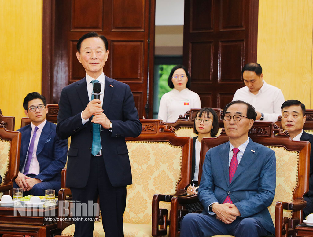 Đại diện Hiệp hội Doanh nghiệp vừa và nhỏ Hàn Quốc, ông Kim Ki-mun đã trân trọng cảm ơn sự đón tiếp trọng thị của lãnh đạo tỉnh Ninh Bình; đánh giá cao những kết quả phát triển, tiềm năng, lợi thế và môi trường đầu tư của tỉnh. Đồng thời, khẳng định, Việt Nam là đối tác thương mại quan trọng của Hàn Quốc với hàng vạn doanh nghiệp Hàn Quốc đang đầu tư và hoạt động hiệu quả tại Việt Nam. Trong thời gian tới, Hiệp hội doanh nghiệp vừa và nhỏ Hàn Quốc mong muốn tỉnh Ninh Bình sẽ tiếp tục dành sự quan tâm, hỗ trợ đến các doanh nghiệp Hàn Quốc trong quá trình tìm hiểu và triển khai đầu tư tại Ninh Bình.