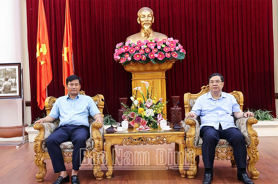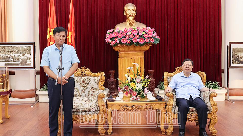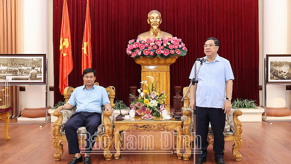 Cùng dự buổi tiếp có các đồng chí Ủy viên Ban TVTU: Nguyễn Phùng Hoan, Phó Chủ tịch Thường trực HĐND tỉnh; Mai Văn Quyết, Giám đốc Sở Kế hoạch và Đầu tư; Nguyễn Anh Tuấn, Bí thư Thành ủy, Chủ tịch HĐND thành phố Nam Định; đồng chí Trần Lê Đoài, TUV, Phó Chủ tịch UBND tỉnh; lãnh đạo các sở, ngành: Văn hóa, Thể thao và Du lịch, Xây dựng, Ngân hàng Nhà nước Chi nhánh tỉnh, Agribank Nam Định, Agribank Bắc Nam Định, Văn phòng Tỉnh ủy.