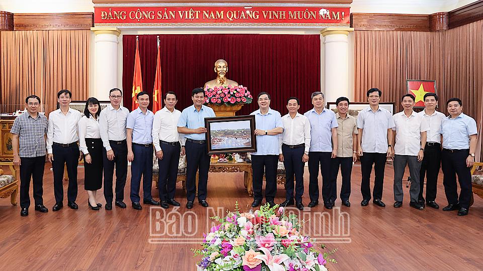 Phát biểu tại buổi làm việc, đồng chí Phạm Gia Túc, Bí thư Tỉnh ủy đã chia sẻ khái quát các tiềm năng lợi thế và tình hình phát triển kinh tế - xã hội của tỉnh Nam Định. Tỉnh có 72km bờ biển; dân số gần 2 triệu người, nguồn nhân lực trẻ dồi dào, lao động có tay nghề, trình độ cao chiếm tỷ lệ lớn. Nam Định đã được Thủ tướng Chính phủ phê duyệt Quy hoạch tỉnh thời kỳ 2021-2030, tầm nhìn đến năm 2050 mở ra không gian mới để thu hút đầu tư phát triển tỉnh. Hệ thống kết cấu hạ tầng giao thông huyết mạch liên vùng của tỉnh dần hoàn chỉnh với mạng lưới đường cao tốc, thuận lợi kết nối với các khu vực kinh tế trọng điểm quốc gia, tạo nhiều thuận lợi cho người dân đi lại và các doanh nghiệp đầu tư. Hàng loạt các dự án giao thông kết nối lớn như: Dự án cầu Bến Mới vượt sông Đáy nối hai tỉnh Nam Định và Ninh Bình; Dự án xây dựng cầu vượt sông Đáy nối tỉnh Ninh Bình và tỉnh Nam Định thuộc tuyến đường cao tốc Ninh Bình - Nam Định - Thái Bình - Hải Phòng; Dự án đầu tư xây dựng đường trục phát triển kết nối vùng kinh tế biển tỉnh Nam Định với đường cao tốc Cầu Giẽ - Ninh Bình (giai đoạn 2); cầu Đống Cao, cầu Song Hào… đang được tỉnh đôn đốc triển khai quyết liệt. Kinh tế duy trì ổn định và phát triển được coi là “điểm sáng” của tỉnh Nam Định trong nửa đầu nhiệm kỳ đến nay. Cơ cấu kinh tế chuyển biến tích cực, lĩnh vực thu hút đầu tư đạt được nhiều kết quả tốt. Các lĩnh vực văn hoá, xã hội tiếp tục phát triển và đạt được nhiều thành tích mới. Ngành Giáo dục và Đào tạo giữ vững thành tích gần 3 thập kỷ nằm trong tốp dẫn đầu cả nước về chất lượng giáo dục. An sinh xã hội được đảm bảo, đời sống vật chất và tinh thần của người dân được nâng lên. Quốc phòng, an ninh chính trị, trật tự an toàn xã hội, chủ quyền an ninh biên giới biển được giữ vững… Huyện Giao Thủy là huyện đầu tiên của tỉnh vừa được Chính phủ công nhận là huyện đạt chuẩn NTM nâng cao.