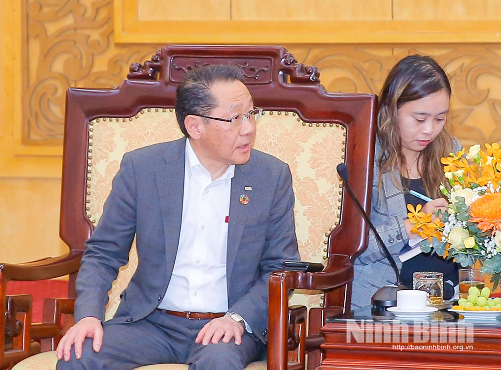 Đồng chí Bí thư Tỉnh ủy khẳng định, trên nền tảng quan hệ đối tác chiến lược toàn diện Việt Nam - Nhật Bản, thời gian qua, tỉnh Ninh Bình đã tăng cường hợp tác với nhiều địa phương, đối tác của Nhật Bản, đặc biệt là trong lĩnh vực kinh tế thông qua các dự án đầu tư của doanh nghiệp Nhật Bản trên địa bàn. Hiện tỉnh đã dành riêng Khu Công nghiệp Đồng Văn III (giai đoạn I) để thu hút các nhà đầu tư Nhật Bản. Ninh Bình luôn trân trọng, đánh giá cao và mong muốn tiếp tục nhận được sự quan tâm, đầu tư của các doanh nghiệp Nhật Bản, góp phần thúc đẩy phát triển kinh tế - xã hội của tỉnh.