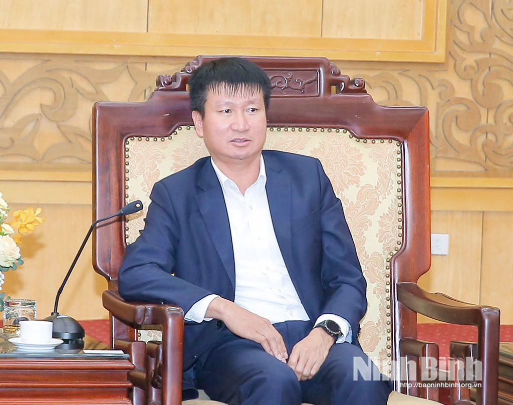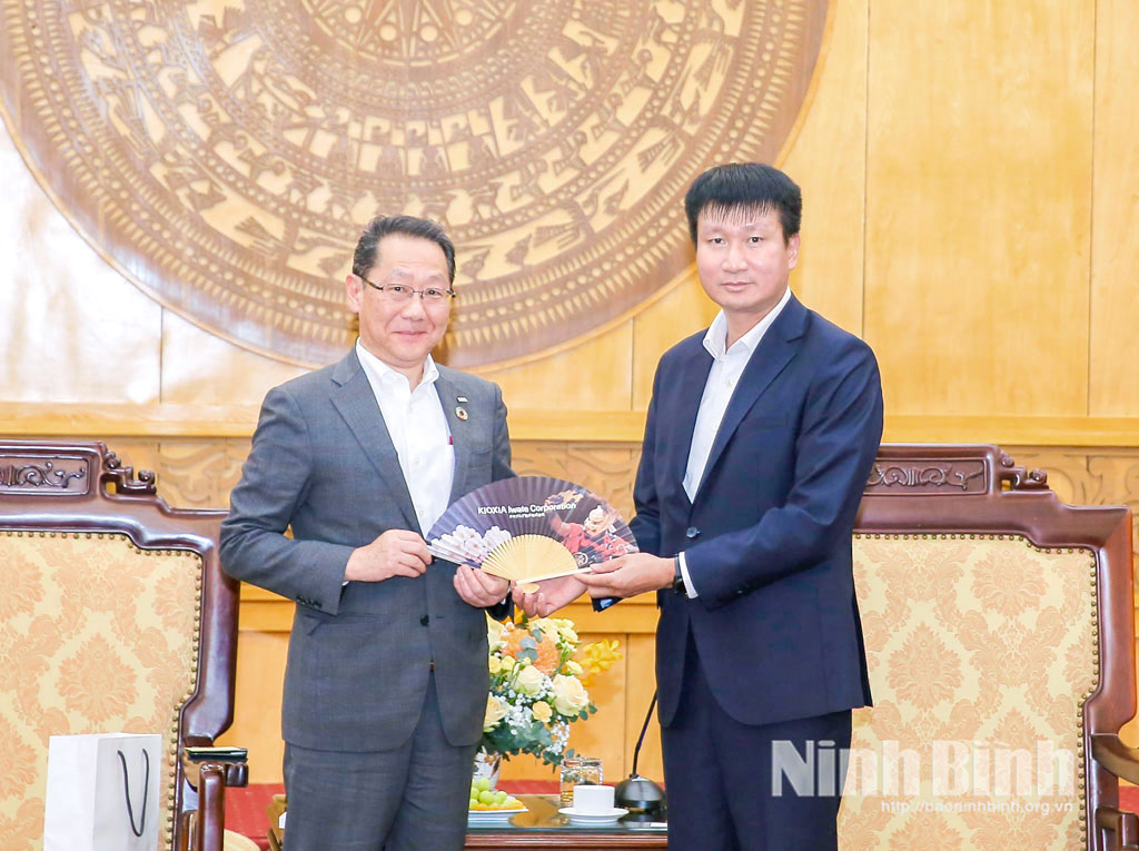 Bày tỏ vui mừng khi tiếp và làm việc với lãnh đạo Công ty Kioxia Holding Corporation và Tập đoàn Hải Phong, đồng chí Bí thư Tỉnh ủy Trần Huy Tuấn đã khái quát những tiềm năng, thế mạnh của Ninh Bình, đặc biệt là truyền thống hiếu học, nhiều năm liền tỷ lệ học sinh tốt nghiệp THPT của tỉnh nằm trong tốp đầu cả nước. Hiện nay, tỉnh có nhiều trường đại học, cơ sở giáo dục nghề nghiệp với quy mô tuyển sinh trên 63.000 người mỗi năm, góp phần tạo khoảng 44.000 - 50.000 lao động trẻ có trình độ tay nghề cao, cung cấp nguồn nhân lực có chất lượng và phục vụ đa dạng cho nhu cầu tuyển dụng lao động, việc làm của doanh nghiệp, nhà đầu tư.