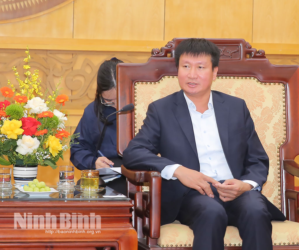 Phát biểu tại buổi làm việc, ông Sung Kim, Tổng Giám đốc Tập đoàn Hyundai Motor cảm ơn sự đón tiếp trọng thị của lãnh đạo tỉnh; đánh giá cao môi trường đầu tư, sự đồng hành của cấp ủy, chính quyền địa phương và khẳng định những kết quả của Tập đoàn tại Việt Nam có sự hỗ trợ tích cực từ tỉnh Ninh Bình. Ông cho biết, Tập đoàn đang thúc đẩy điện khí hóa, phát triển các dòng xe thân thiện với môi trường; đồng thời, nhấn mạnh việc xây dựng hệ sinh thái sản xuất và cung ứng tại chỗ trong bối cảnh chuỗi cung ứng toàn cầu biến động. Tập đoàn cam kết tiếp tục tăng cường hợp tác với các đối tác tại Ninh Bình, phát triển chuỗi giá trị, đóng góp vào mục tiêu tăng trưởng xanh của địa phương.