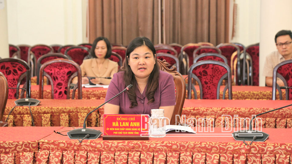 | Đồng chí Hà Lan Anh, TUV, Phó Chủ tịch UBND tỉnh phát biểu tại buổi làm việc. |