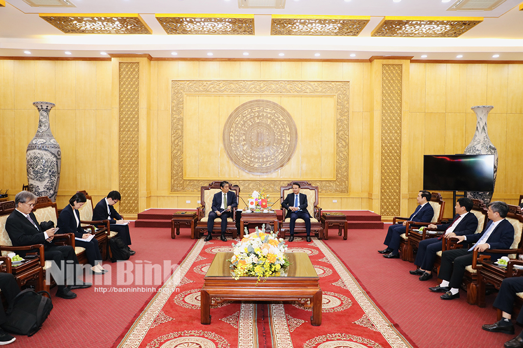 Phát biểu tại buổi tiếp xã giao, ngài Ito Naoki, Đại sứ đặc mệnh toàn quyền Nhật Bản tại Việt Nam trân trọng cảm ơn sự đón tiếp trọng thị, thân tình của các đồng chí lãnh đạo tỉnh Ninh Bình. Ngài Đại sứ cũng chia sẻ với những thiệt hại, mất mát của người dân Ninh Bình bị ảnh hưởng bởi cơn bão số 10 vừa qua.
