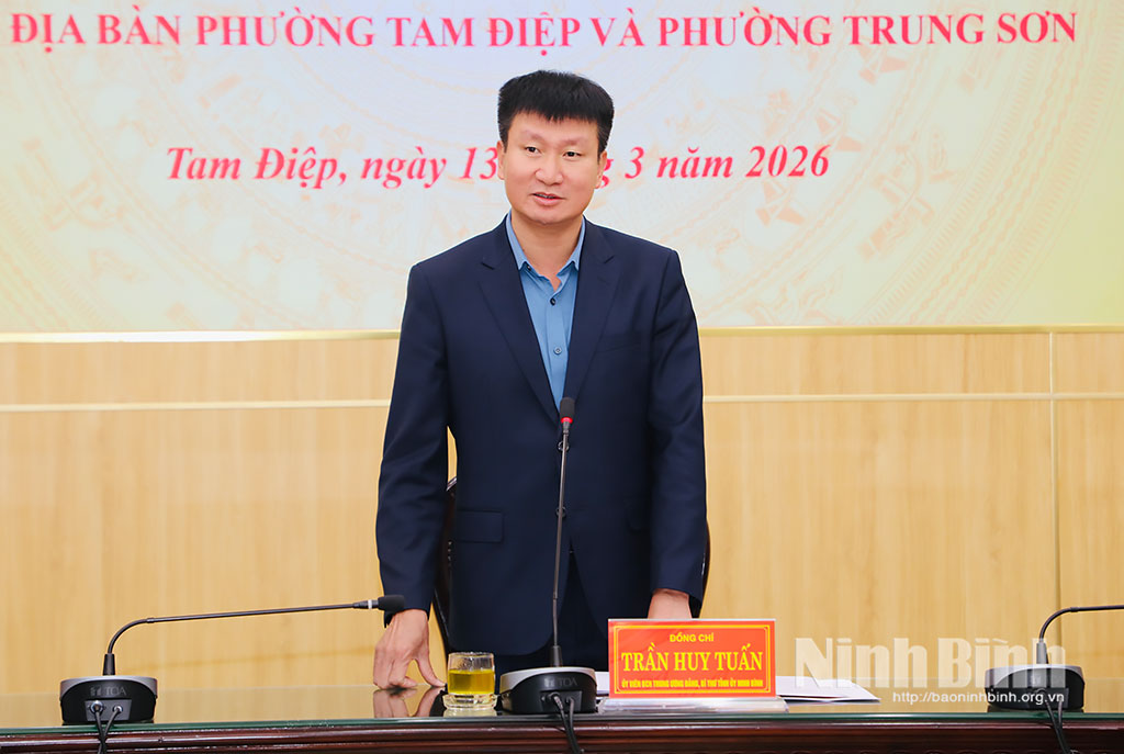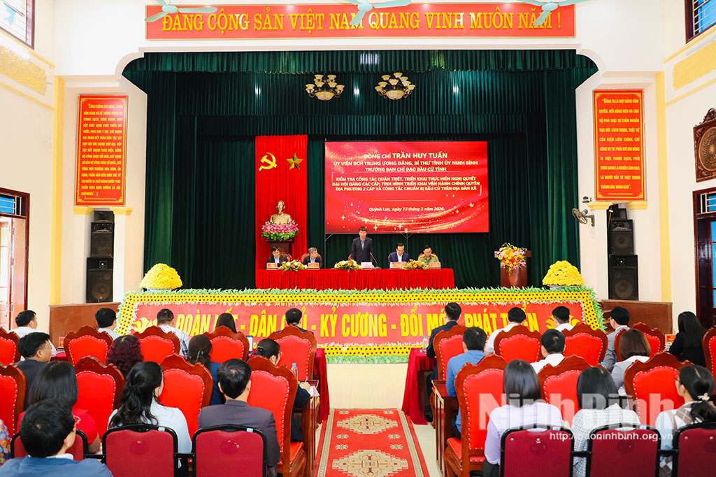Sáng 13/3, Đoàn công tác của tỉnh do đồng chí Trần Huy Tuấn, Ủy viên Trung ương Đảng, Bí thư Tỉnh ủy, Trưởng Ban Chỉ đạo Cuộc bầu cử tỉnh làm Trưởng đoàn đã đi kiểm tra việc triển khai thực hiện Nghị quyết Đại hội Đảng các cấp; việc vận hành chính quyền địa phương hai cấp và công tác chuẩn bị cho cuộc bầu cử đại biểu Quốc hội khóa XVI và đại biểu HĐND các cấp nhiệm kỳ 2026-2031 tại phường Tam Điệp, phường Trung Sơn, xã Quỳnh Lưu.