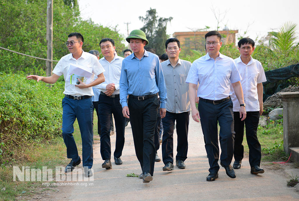 Cùng dự buổi làm việc có đồng chí Trần Đăng Quỳnh, Ủy viên dự khuyết Trung ương Đảng, Phó Bí thư Tỉnh ủy; các đồng chí Ủy viên Ban Thường vụ Tỉnh ủy: Trần Anh Dũng, Phó Chủ tịch UBND tỉnh; Mai Văn Quyết, Giám đốc Sở Tài chính; Nguyễn Văn Lượng, Giám đốc Sở Xây dựng; đại diện lãnh đạo Sở Nông nghiệp và Môi trường, Văn phòng UBND tỉnh, lãnh đạo các xã: Giao Minh, Giao Ninh.