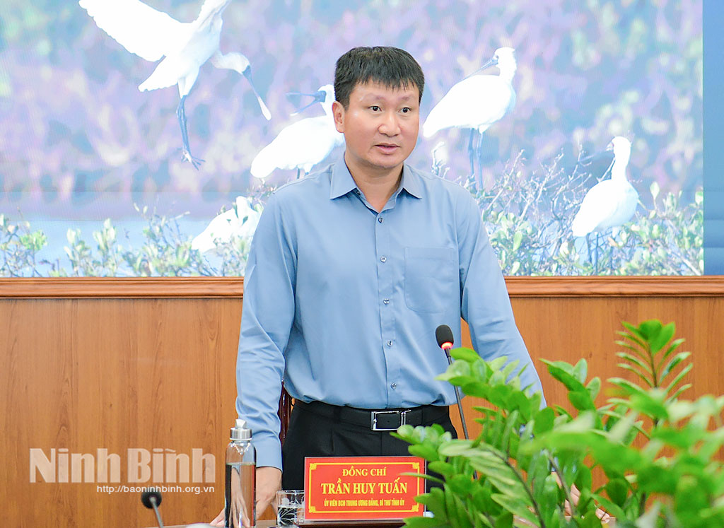 Đồng chí Trần Huy Tuấn, Ủy viên Trung ương Đảng, Bí thư Tỉnh ủy phát biểu tại buổi làm việc.