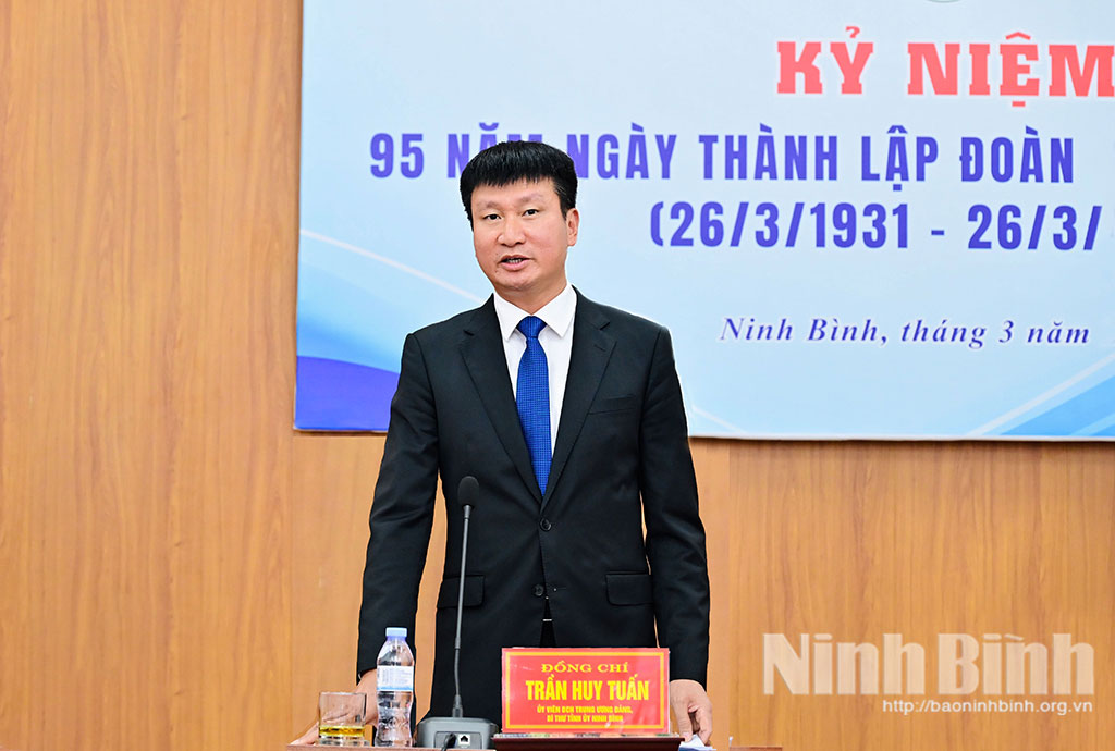 Phát biểu tại buổi thăm, chúc mừng, đồng chí Bí thư Tỉnh ủy Trần Huy Tuấn ghi nhận, biểu dương và đánh giá cao những kết quả mà các cấp bộ Đoàn trong tỉnh đạt được thời gian qua. Đồng chí khẳng định, trong bối cảnh mới, tổ chức Đoàn cần tiếp tục phát huy truyền thống vẻ vang, khẳng định vai trò là lực lượng xung kích cách mạng, đội dự bị tin cậy của Đảng. Thay mặt lãnh đạo tỉnh, đồng chí Bí thư Tỉnh ủy gửi lời chúc mừng tốt đẹp tới toàn thể cán bộ, đoàn viên, thanh niên trong tỉnh nhân dịp kỷ niệm 95 năm Ngày thành lập Đoàn TNCS Hồ Chí Minh. Đồng thời mong muốn tuổi trẻ Ninh Bình tiếp tục phát huy tinh thần tiên phong trong học tập, rèn luyện, đổi mới sáng tạo, tích cực tham gia chuyển đổi số, khởi nghiệp, lập nghiệp, đóng góp thiết thực vào sự phát triển kinh tế - xã hội của tỉnh.