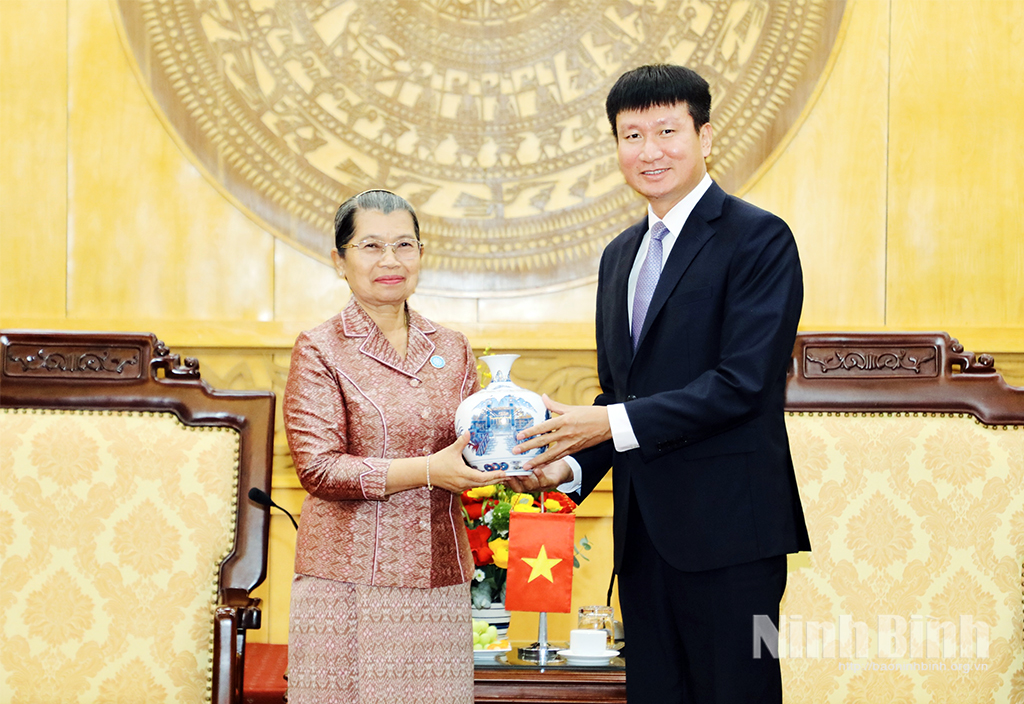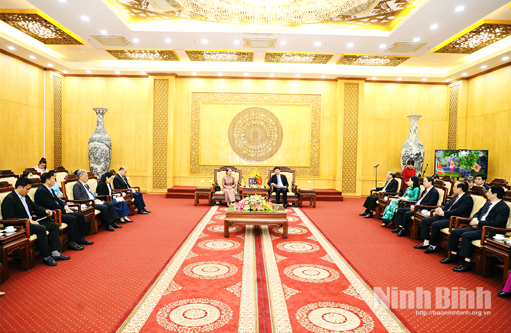Trong khuôn khổ chuyến thăm và làm việc tại Việt Nam, ngày 22/3, Đoàn đại biểu cấp cao Hội đồng Quốc gia Mặt trận Đoàn kết Phát triển Tổ quốc Campuchia do bà Men Sam An, Phó Chủ tịch Đảng Nhân dân Campuchia, Chủ tịch Hội đồng Quốc gia Mặt trận Đoàn kết Phát triển Tổ quốc Campuchia, Chủ tịch Hội Hữu nghị Campuchia - Việt Nam làm Trưởng đoàn đã đến thăm và làm việc tại tỉnh Ninh Bình.