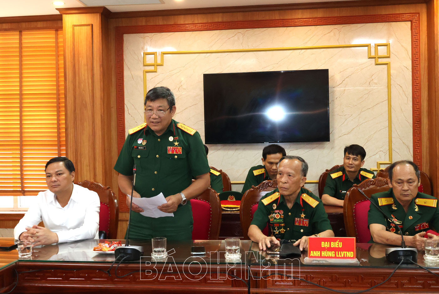 Anh hùng LLVT nhân dân Đại tá Trần Đức Cơ phát biểu tại buổi gặp mặt.