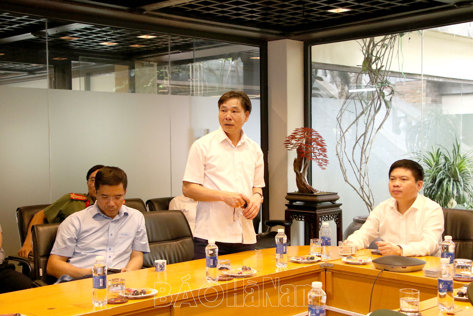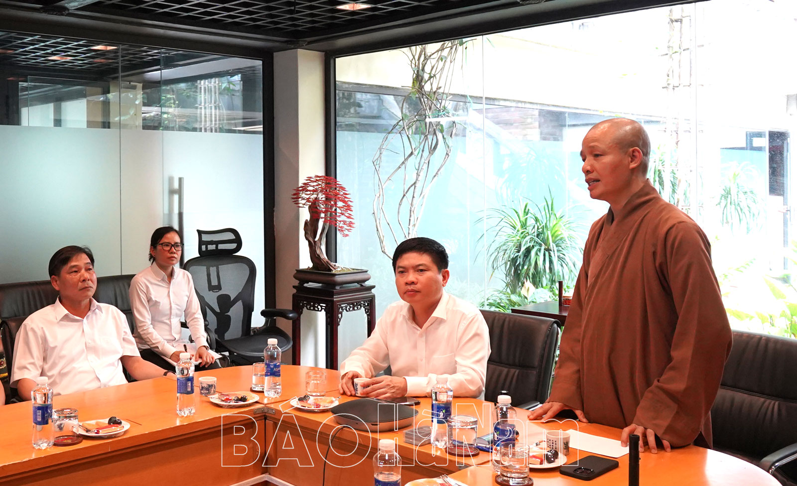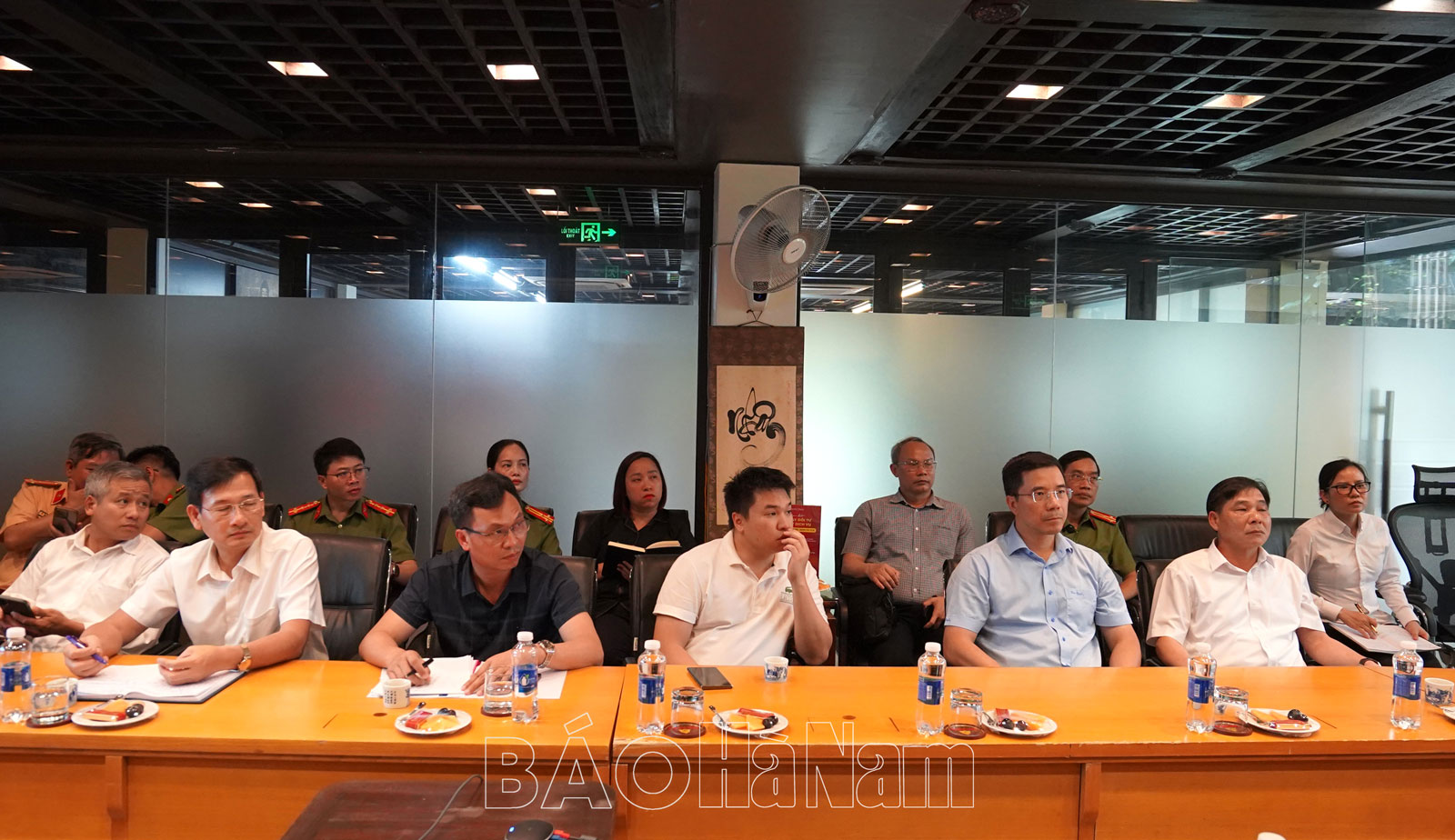Đại diện chùa Tam Chúc báo cáo tình hình chuẩn bị Đại lễ.Đại diện lãnh đạo Cục an ninh Nội địa phát biểu tại buổi làm việc.