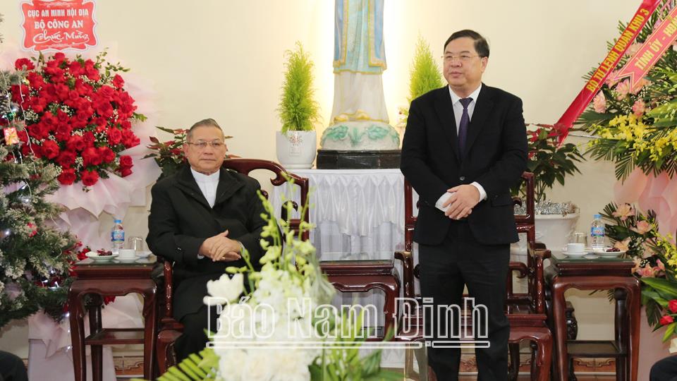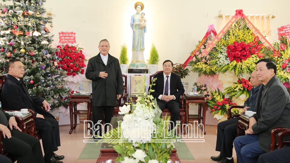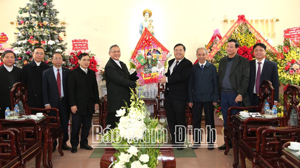 Thay mặt Tỉnh ủy, HĐND, UBND, Ủy ban MTTQ tỉnh, đồng chí Bí thư Tỉnh ủy Phạm Gia Túc đã tặng hoa, chúc mừng Giám mục Vũ Đình Hiệu cùng bà con giáo dân trong giáo phận Bùi Chu năm mới an lành, đón lễ Giáng sinh an vui, sức khỏe, hạnh phúc, tràn đầy hồng ân Thiên Chúa. Nhân dịp này, Ban Tôn giáo Chính phủ đã gửi lẵng hoa chúc mừng./.