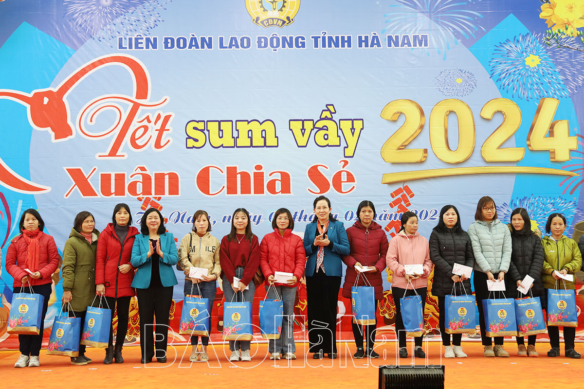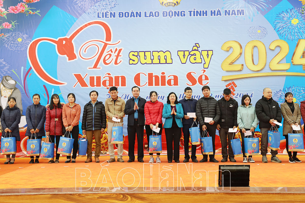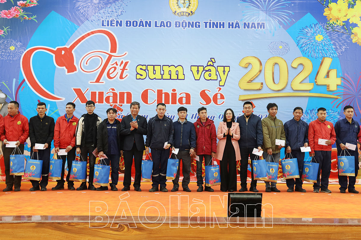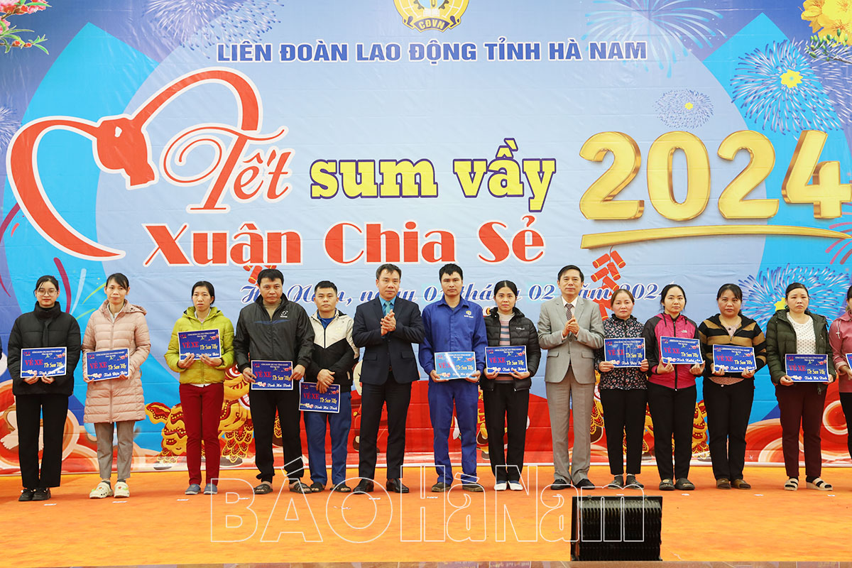 Tại chương trình, 300 đoàn viên, công nhân lao động có hoàn cảnh khó khăn đã được các đồng chí lãnh đạo Đảng, Nhà nước, Tổng LĐLĐ Việt Nam, Tỉnh ủy, LĐLĐ tỉnh tặng quà và vé xe nhân dịp Tết Giáp Thìn 2024.