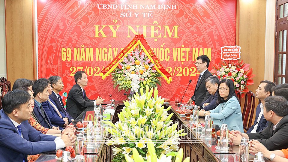 Phát biểu chúc mừng nhân kỷ niệm 69 năm Ngày Thầy thuốc Việt Nam, đồng chí Chủ tịch UBND tỉnh Phạm Đình Nghị ghi nhận những nỗ lực, đóng góp của ngành Y tế tỉnh trong thực hiện công tác khám, chữa bệnh cho nhân dân. Trong nhiệm kỳ 2020-2025 và nhiệm kỳ tới, tỉnh ưu tiên dành nguồn lực đầu tư cho ngành Y tế; trong đó chú trọng hoàn thành việc xây dựng Bệnh viện Đa khoa tỉnh; tăng cường liên kết với các bệnh viện lớn ở Trung ương để hỗ trợ trang thiết bị y tế, đào tạo chuyên môn cho các y, bác sĩ trong tỉnh.
