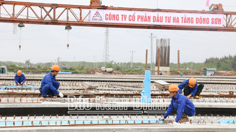 | Công trường dự án Xây dựng tuyến đường bộ mới Nam Định - Lạc Quần - Đường bộ ven biển đoạn qua huyện Nam Trực. |