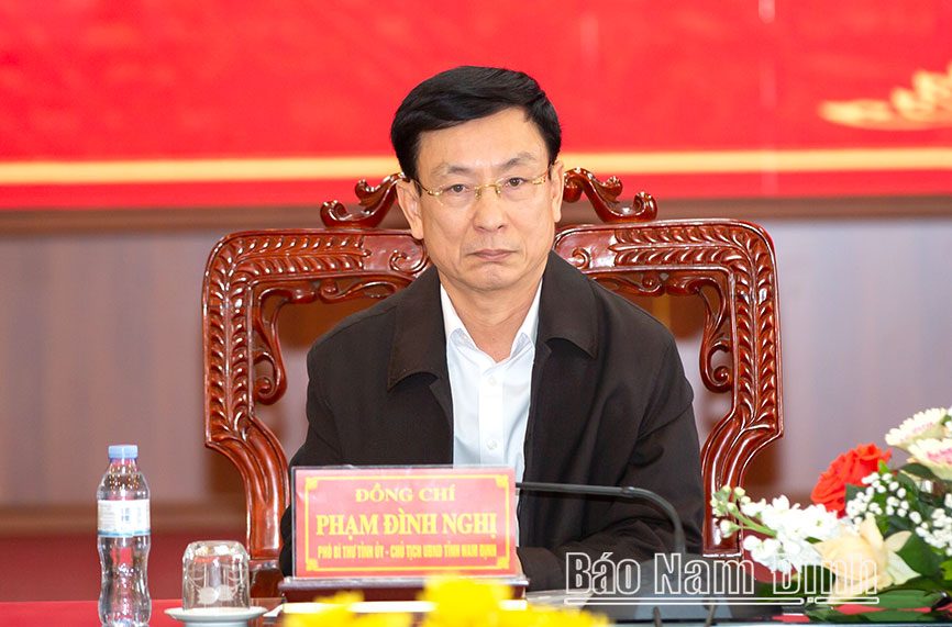 | Đồng chí Phạm Đình Nghị, Phó Bí thư Tỉnh ủy, Chủ tịch UBND tỉnh chủ trì buổi làm việc. |