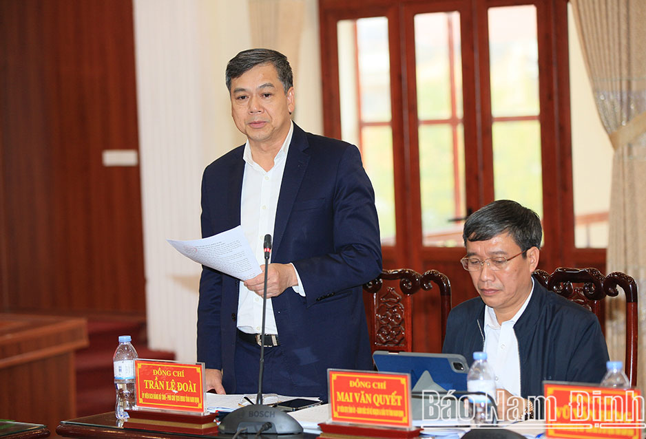 | Đồng chí Trần Lê Đoài, TUV, Phó Chủ tịch UBND tỉnh phát biểu tại buổi làm việc. |