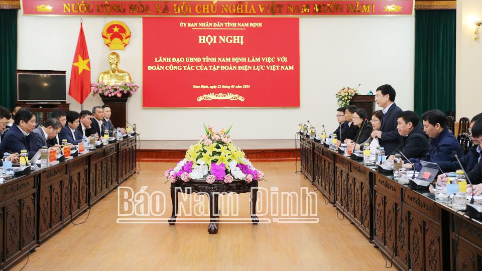 Tại buổi làm việc, UBND tỉnh đã thông tin đến EVN về kết quả phát triển kinh tế - xã hội trên địa bàn tỉnh và nhu cầu sử dụng điện năng của tỉnh. Theo đó, năm 2023 là năm rất thành công ấn tượng của tỉnh trong phát triển kinh tế - xã hội. Kinh tế có bước phát triển mới, tổng sản phẩm GPDP tăng 10,19%, cao nhất từ trước đến nay. Hệ thống kết cấu hạ tầng kinh tế - xã hội, đặc biệt là hệ thống giao thông, hạ tầng các khu, cụm công nghiệp được tập trung đầu tư, tạo động lực cho phát triển kinh tế - xã hội. Công tác xúc tiến và thu hút đầu tư chuyển biến tích cực, ngày càng thu hút nhiều nhà đầu tư lớn, có vị thế toàn cầu. Quy hoạch tỉnh thời kỳ 2021-2030, tầm nhìn đến năm 2050 đã được Thủ tướng Chính phủ phê duyệt, tạo định hướng, kỳ vọng thu hút đầu tư, phát triển hàng loạt dự án lớn, trọng điểm. Do đó, nhu cầu sử dụng điện để phục vụ sản xuất, kinh doanh trong thời gian tới là rất lớn. Dự kiến, ngay trong giai đoạn 2024-2025, tại Nam Định tổng công suất tăng thêm theo đăng ký khoảng 460MW; trong đó khách hàng chuyên dùng là 55MW, khách hàng khu công nghiệp là 350MW, khách hàng cụm công nghiệp là 55MW. Dự kiến Pmax đến năm 2025 toàn tỉnh đạt 1.100MW (chưa tính công suất của Tập đoàn Xuân Thiện khoảng 500MW được đầu tư trạm 220kV cấp điện riêng); tăng trưởng trung bình cả giai đoạn 2021-2025 dự kiến 13,5%/năm. Sản lượng điện thương phẩm đến năm 2025 dự kiến khoảng 3,8 tỷ kWh, tăng trưởng bình quân 7,2%/năm.