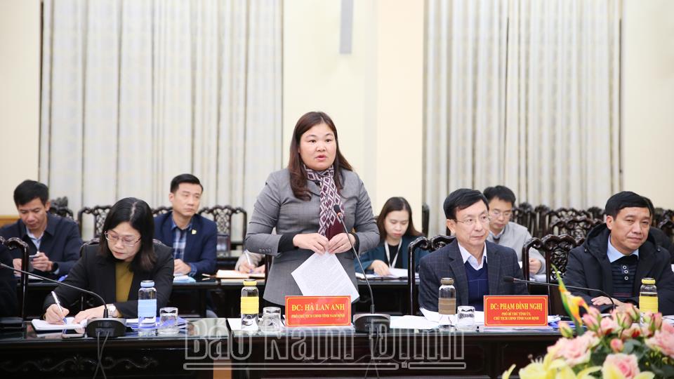 | Đồng chí Hà Lan Anh, TUV, Phó Chủ tịch UBND tỉnh báo cáo tóm tắt tình hình, kết quả thực hiện nhiệm vụ phát triển kinh tế - xã hội của tỉnh năm 2023; phương hướng nhiệm vụ năm 2024. |