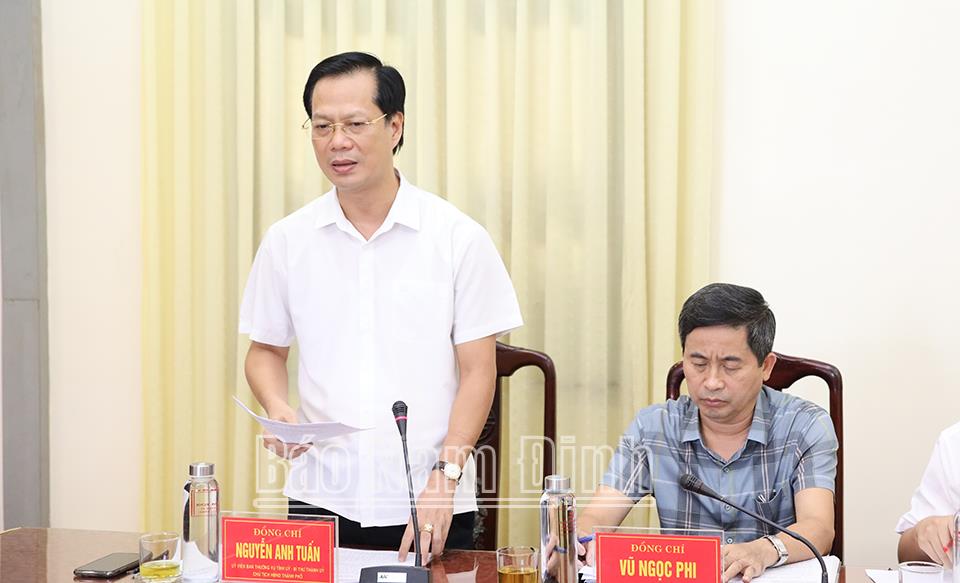 | Đồng chí Nguyễn Anh Tuấn, Ủy viên Ban TVTU, Bí Thư Thành ủy, Chủ tịch HĐND thành phố Nam Định phát biểu tại buổi làm việc. |