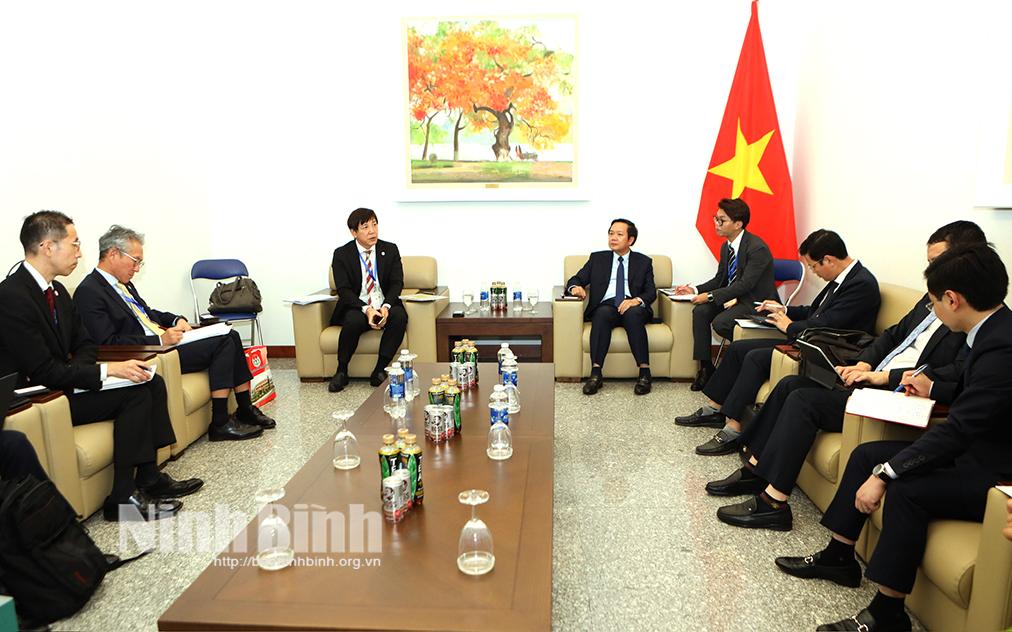 Đồng chí cũng bày tỏ băn khoăn khi những thông tin về Ninh Bình tới các nhà đầu tư Nhật Bản chưa được cập nhật chính xác, kịp thời, nên các nhà đầu tư Nhật Bản còn khá khiêm tốn. Chính vì vậy, đồng chí mong muốn, thông qua buổi làm việc lần này sẽ là cơ hội để tỉnh đẩy mạnh thông tin, truyền thông về tiềm năng, thế mạnh tới các nhà đầu tư Nhật Bản.