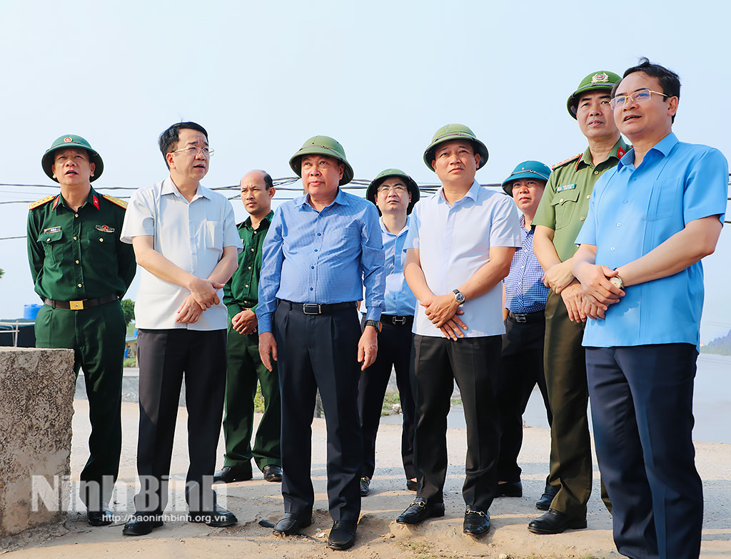 Đồng chí Chủ tịch UBND tỉnh Nguyễn Thanh Bình và đoàn công tác kiểm tra tại điểm sạt lở bãi sông, đoạn từ K24+710 K25+450 đê hữu sông Đáy (phường Đông Hoa Lư).