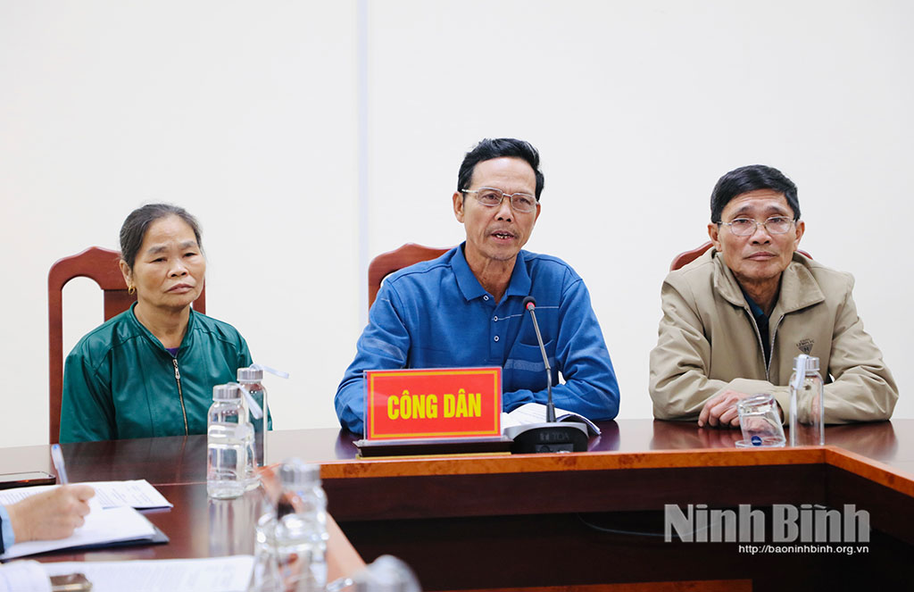 Tại phiên tiếp công dân, đồng chí Chủ tịch UBND tỉnh đã nghe các công dân: Trần Văn Minh, Vũ Đình Cường, Trương Thị Tám (trú tại thôn 2, 3, 4, xã Gia Hưng) đại diện cho trên 20 hộ dân địa phương nêu ý kiến, kiến nghị không nhất trí đối với phương án bồi thường, giải phóng mặt bằng Dự án xây dựng cầu vượt sông Bôi và đề nghị chủ đầu tư là Ban Quản lý đầu tư xây dựng số 1 tỉnh Ninh Bình sớm thi công hoàn trả lại tuyến đường dân sinh, tránh ảnh hưởng đến việc đi lại phục vụ sản xuất nông nghiệp của nhân dân.
