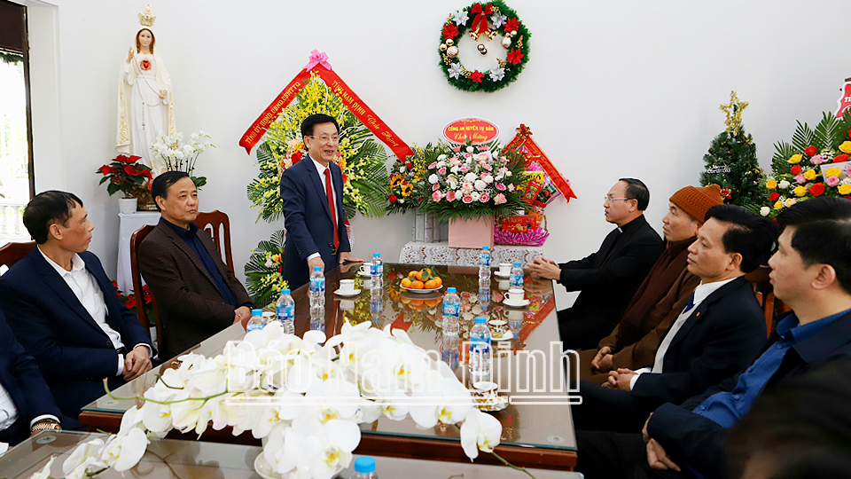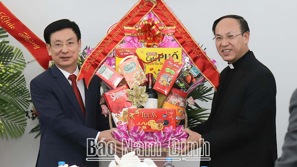 Thay mặt Tỉnh ủy, HĐND, UBND tỉnh, đồng chí Chủ tịch UBND tỉnh Phạm Đình Nghị đã chúc mừng Linh mục Nguyễn Văn Hy và bà con giáo dân giáo xứ Xuân Bảng đón lễ Noel 2022 và Xuân mới 2023 ấm áp, an lành. Đồng thời đồng chí đã thông tin nhanh những kết quả đạt được trong phát triển kinh tế - xã hội của tỉnh năm 2022. Trong đó, năm 2022 mặc dù còn nhiều khó khăn song dưới sự lãnh đạo của các cấp ủy đảng, chính quyền, sự nỗ lực của các cấp, ngành, các cơ quan, đơn vị và nhân dân trong tỉnh, kinh tế - xã hội của tỉnh có bước phát triển ổn định, các chỉ tiêu phát triển kinh tế - xã hội chủ yếu đạt và vượt kế hoạch đề ra. Công tác xây dựng nông thôn mới (NTM) được quan tâm đẩy mạnh triển khai thực hiện theo các tiêu chí nâng cao, kiểu mẫu; đến nay, toàn tỉnh có 89,2% số xã, thị trấn đạt chuẩn NTM nâng cao. Đặc biệt trong lĩnh vực giáo dục và đào tạo, tỉnh ta tiếp tục duy trì tốp dẫn đầu toàn quốc về chất lượng giáo dục, tại kỳ thi tốt nghiệp THPT quốc gia năm 2022 tỉnh Nam Định đứng thứ nhất toàn quốc về số điểm trung bình các môn.