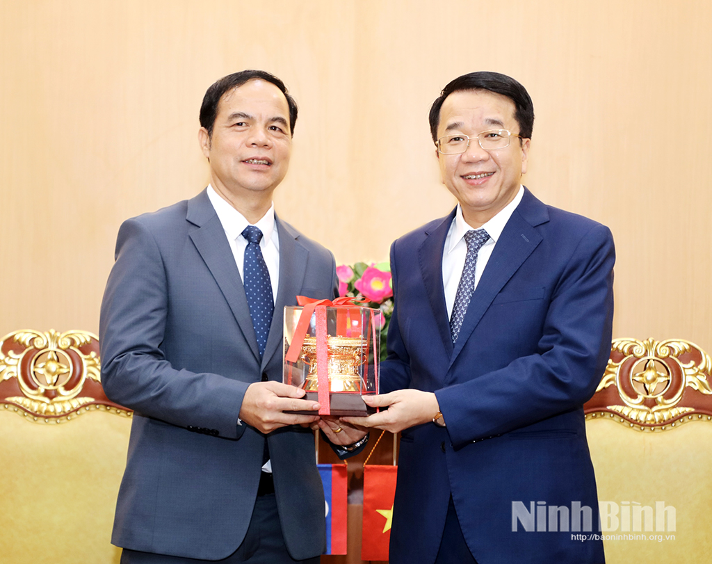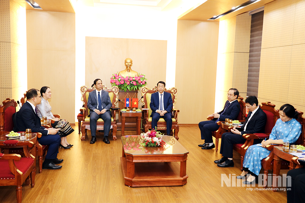 Cùng với thông tin về tình hình phát triển kinh tế - xã hội của tỉnh, đồng chí Chủ tịch UBND tỉnh cho biết: Trong thời gian tới, tỉnh Ninh Bình mong muốn, thông qua vai trò cầu nối của đồng chí Đại sứ, hai bên sẽ tiếp tục thúc đẩy các chương trình hợp tác cụ thể trên các lĩnh vực, góp phần củng cố sự hiểu biết và gắn bó giữa nhân dân hai nước. Ninh Bình cũng sẵn sàng chia sẻ kinh nghiệm trong quá trình phát triển kinh tế - xã hội, xây dựng chính quyền địa phương tinh gọn, hiệu quả, đồng thời mong muốn được học hỏi thêm những kinh nghiệm quý báu từ các địa phương của nước bạn Lào.