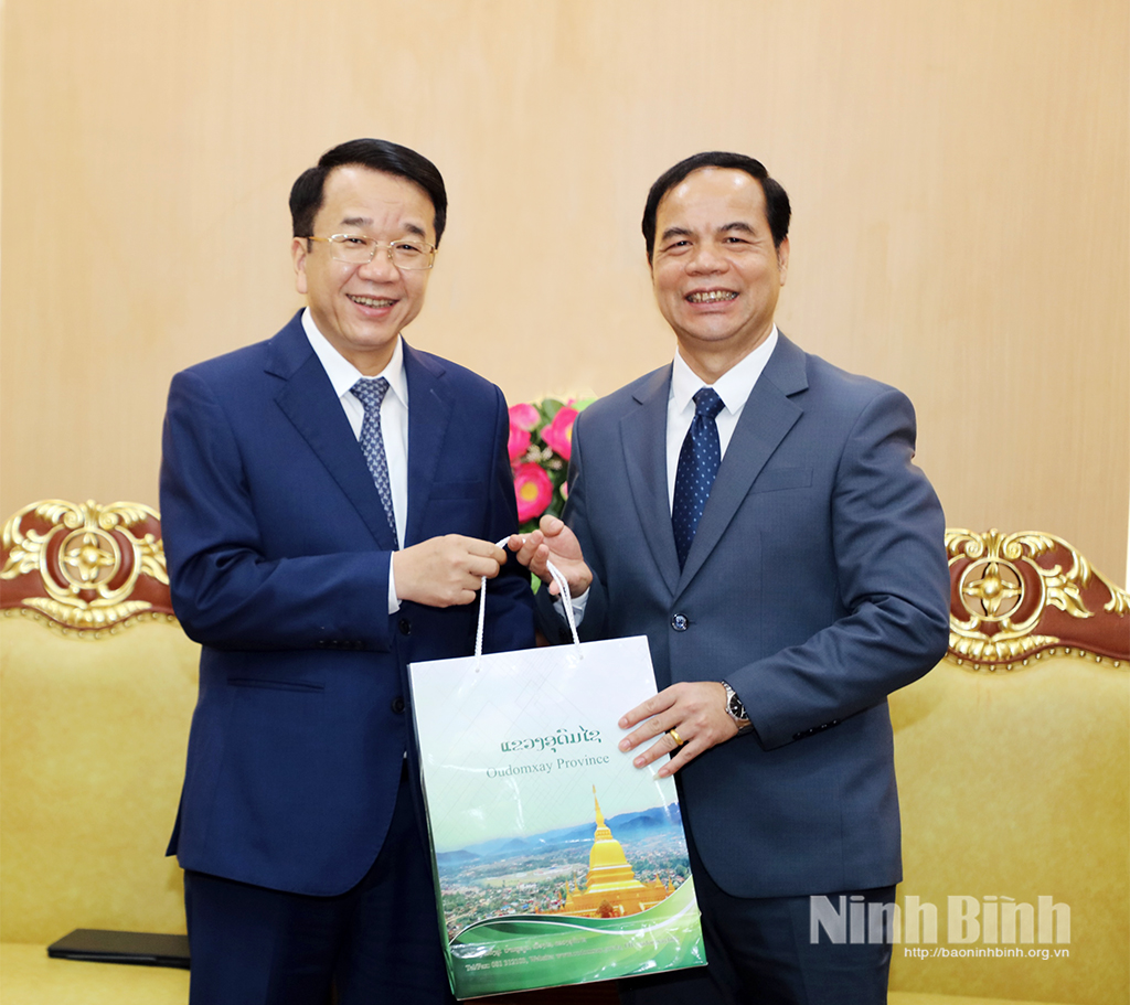 Nhân dịp này, đồng chí cũng chuyển lời mời của lãnh đạo tỉnh Ninh Bình tới lãnh đạo tỉnh U-Đôm-Xay sang thăm và làm việc trong thời gian tới; đồng thời đề nghị các cơ quan chức năng hai bên tiếp tục nghiên cứu, tham mưu ký kết lại Biên bản ghi nhớ chương trình hợp tác giữa 2 tỉnh phù hợp với bối cảnh sau sắp xếp, qua đó góp phần thắt chặt hơn nữa mối quan hệ gắn bó giữa hai địa phương.