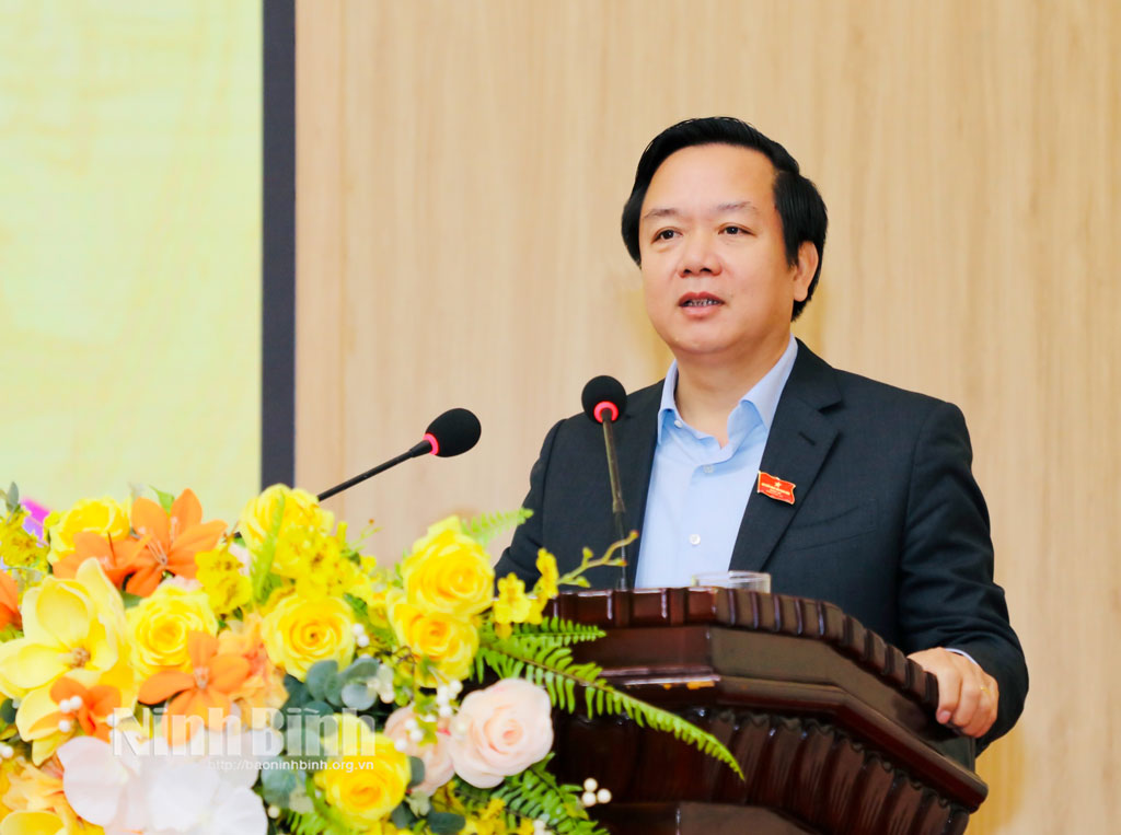 Thông tin đến cử tri, đồng chí Phó Bí thư Tỉnh ủy, Chủ tịch UBND tỉnh nhấn mạnh, năm 2025, thực hiện chủ trương lớn của Đảng và Nhà nước về sắp xếp đơn vị hành chính; tỉnh Ninh Bình đã tập trung lãnh đạo, chỉ đạo hoàn thành sắp xếp tổ chức bộ máy và vận hành ổn định, thông suốt chính quyền địa phương 02 cấp. Sau hợp nhất, tỉnh Ninh Bình với diện tích hơn 3,9 nghìn km2, với 92 km đường bờ biển, dân số trên 4 triệu người; quy mô kinh tế khoảng 352 nghìn tỷ đồng, xếp thứ 10/34 cả nước; cơ cấu kinh tế chuyển dịch tích cực, trong đó, công nghiệp, xây dựng và dịch vụ chiếm gần 90%; thu ngân sách ước đạt 75.851 tỷ động; tổng sản phẩm (GRDP) bình quân đầu người ước đạt 89,15triệu đồng; đây là nền tảng quan trọng, mở ra không gian phát triển mới, tạo tiền đề để Ninh Bình vững bước cùng cả nước bước vào kỷ nguyên mới, kỷ nguyên vươn mình của dân tộc. Tỉnh xác định phát triển kinh tế theo hướng xanh, bền vững và hài hòa, là trục động lực của vùng, vừa là hậu cần sinh thái, văn hóa, vừa là đầu tàu tăng trưởng công nghiệp, đổi mới sáng sáng tạo, cùng với Hải Phòng - Quảng Ninh - Hà Nội hợp thành “tứ giác phát triển” mới của vùng. Trong cấu trúc phát triển vùng, tỉnh Ninh Bình sau hợp nhất đang mang trên mình sứ mệnh mới - vị thế mới.