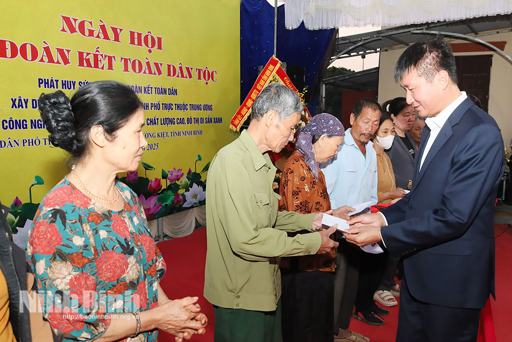 Tại Ngày hội, thay mặt Ban Thường vụ Tỉnh ủy, đồng chí Trần Huy Tuấn, Phó Bí thư Tỉnh ủy, Chủ tịch UBND tỉnh đã tặng hoa và bức ảnh “Bác Hồ và Bác Tôn bắt tay kết đoàn” cho cán bộ và Nhân dân Tổ dân phố Thanh Nộn 2.