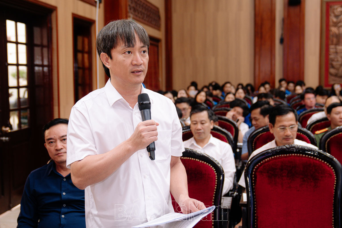 Đối với nhóm vấn đề về công tác xây dựng tổ chức Đoàn, Hội, Đội; Đoàn tham gia xây dựng Đảng, hệ thống chính trị, lãnh đạo UBND tỉnh rất chia sẻ với vấn đề mà cán bộ Đoàn đang quan tâm, trăn trở về phương án, chính sách, lộ trình sắp xếp lực lượng cán bộ Đoàn dôi dư do sắp xếp các đơn vị hành chính cấp xã giai đoạn 2023-2025... Về nhóm vấn đề này, Tỉnh ủy, HĐND, UBND tỉnh đã rất quan tâm và có nhiều cơ chế chính sách tạo điều kiện cho cán bộ Đoàn các cấp cũng như hoạt động của tổ chức đoàn cơ sở. Đồng chí đề nghị đoàn viên, thanh niên cần quan tâm tới việc lựa chọn trang bị kiến thức chuyên ngành trước mắt để nâng cao chất lượng công tác Đoàn và sau này đáp ứng dự tuyển các vị trí công tác khác sau khi hết tuổi Đoàn…