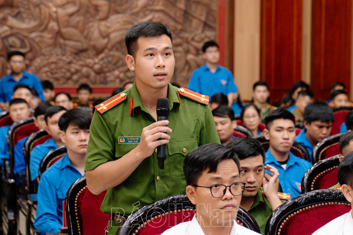 Liên quan đến vấn đề giáo dục, đào tạo, phát triển kỹ năng, thể chất, nâng cao đời sống văn hóa, tinh thần cũng là một vấn đề rất quan trọng góp phần hình thành, giáo dục nhân cách sống của thế hệ thanh niên trên địa bàn tỉnh, đồng chí Chủ tịch UBND tỉnh cho biết: Tình hình tội phạm lừa đảo chiếm đoạt tài sản, nhất là lừa đảo chiếm đoạt tài sản trên không gian mạng; tình trạng tin xấu độc, tin giả chống phá Đảng, nhà nước của các thế lực thù địch… đã tác động phần nào đến thanh niên và là thách thức không nhỏ đối với các cơ quan làm công tác quản lý. Do vậy, đối với vấn đề này, đồng chí Chủ tịch UBND tỉnh mong muốn và đề nghị mỗi đoàn viên, thanh niên hãy tự giác học tập, trau dồi, rèn luyện để bản thân có tư tưởng và định hướng đúng đắn, vững vàng trước mỗi thông tin được tiếp nhận. Đồng thời, các cơ quan làm công tác tuyên truyền, cơ quan quản lý nhà nước cũng cần tiếp tục quan tâm hơn đến công tác giáo dục chính trị, tư tưởng cho thanh niên bằng các hình thức và nội dung phong phú, phù hợp để góp phần giáo dục tư tưởng, chính trị, nâng cao đời sống văn hóa, tinh thần cho thanh, thiếu niên và các biện pháp xử lý các hành vi vi phạm trên không gian mạng.