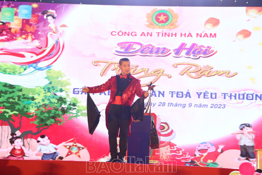Hòa trong không khí vui tươi, phấn khởi của hàng triệu thiếu niên, nhi đồng cả nước đón Tết Trung thu, tối 28/9 (tức ngày 14/8 âm lịch), tại Nhà thi đấu thể dục, thể thao tỉnh Hà Nam (xã Tiên Hiệp, thành phố Phủ Lý), Công an tỉnh Hà Nam tổ chức chương trình “Đêm hội trăng rằm – Gắn kết và lan tỏa yêu thương” cho các cháu thiếu nhi có hoàn cảnh khó khăn, trẻ em mồ côi, con cán bộ, chiến sĩ công an các đơn vị, địa phương trong tỉnh.