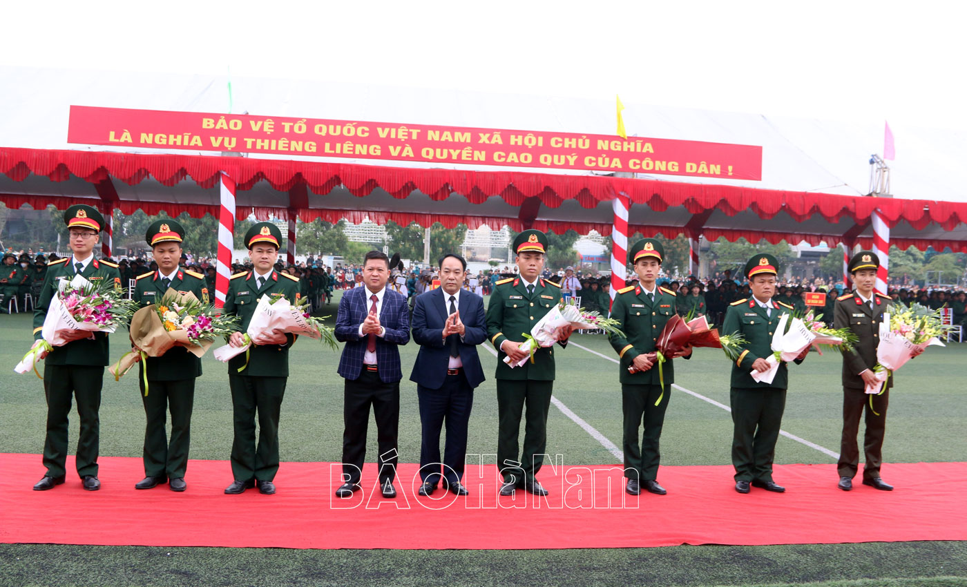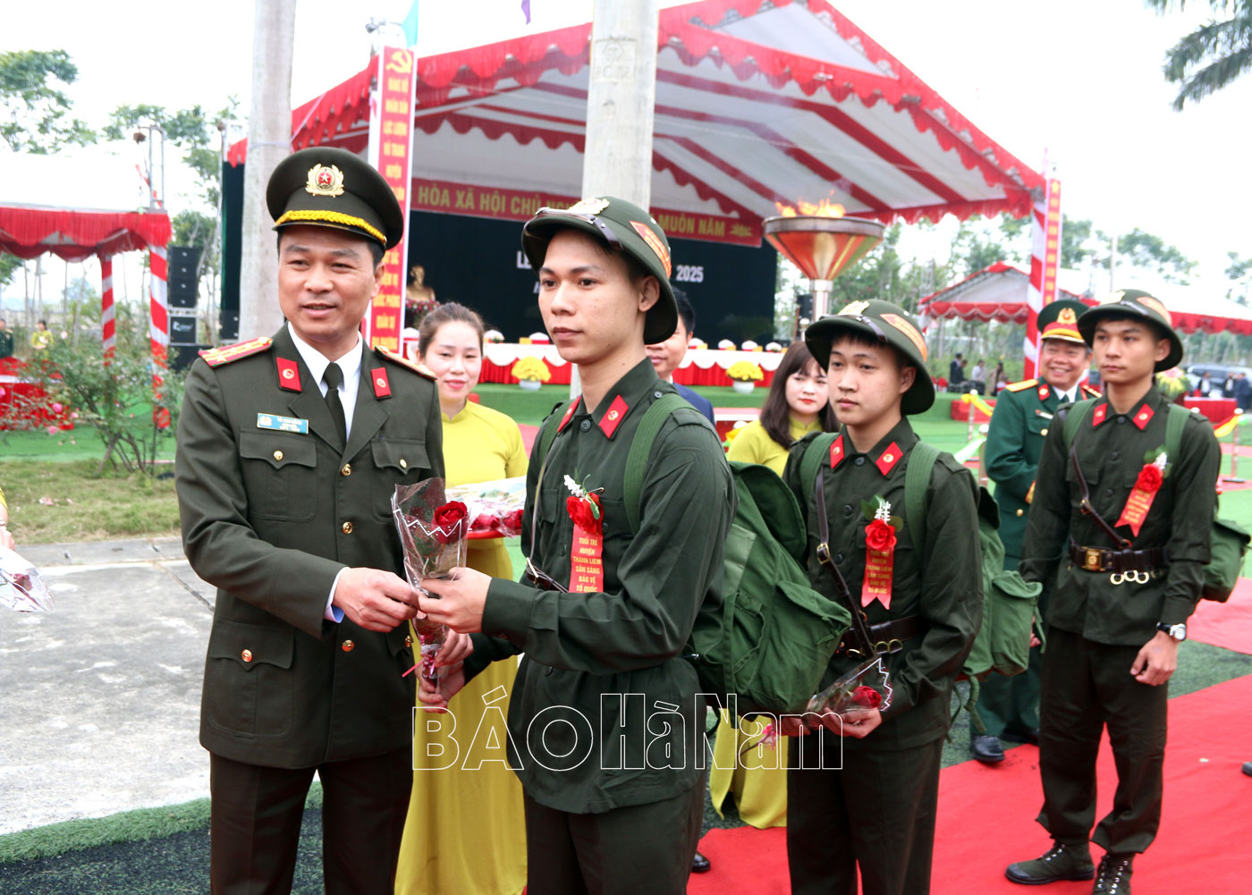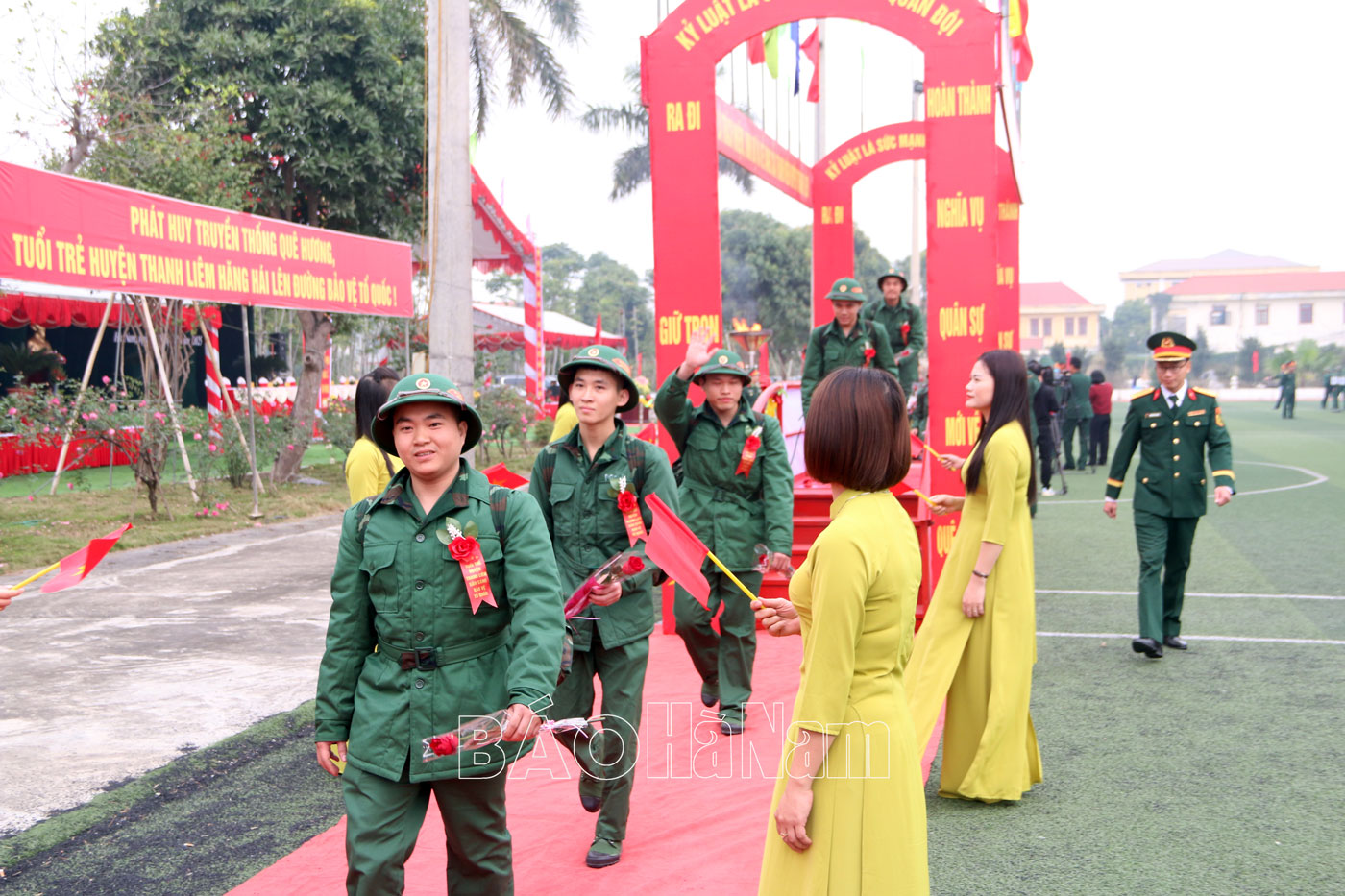 Tại buổi lễ, nhằm động viên các tân binh trước khi lên đường nhập ngũ, đồng chí Chủ tịch UBND tỉnh Trương Quốc Huy; đại diện các sở, ban, ngành của tỉnh, lãnh đạo huyện Thanh Liêm đã tặng hoa, động viên, chúc các tân binh lên đường nhập ngũ mạnh khỏe, hoàn thành tốt nhiệm vụ.