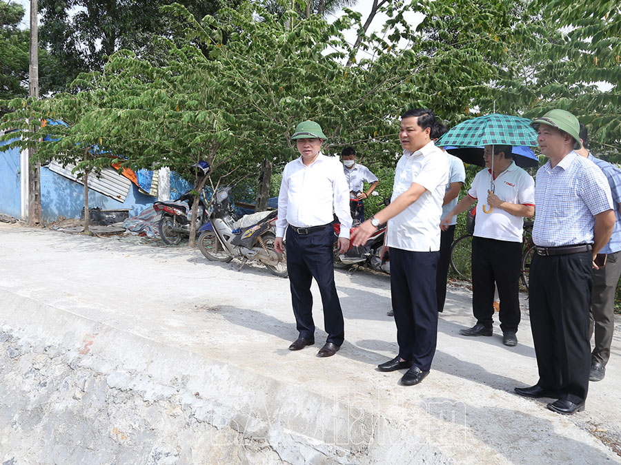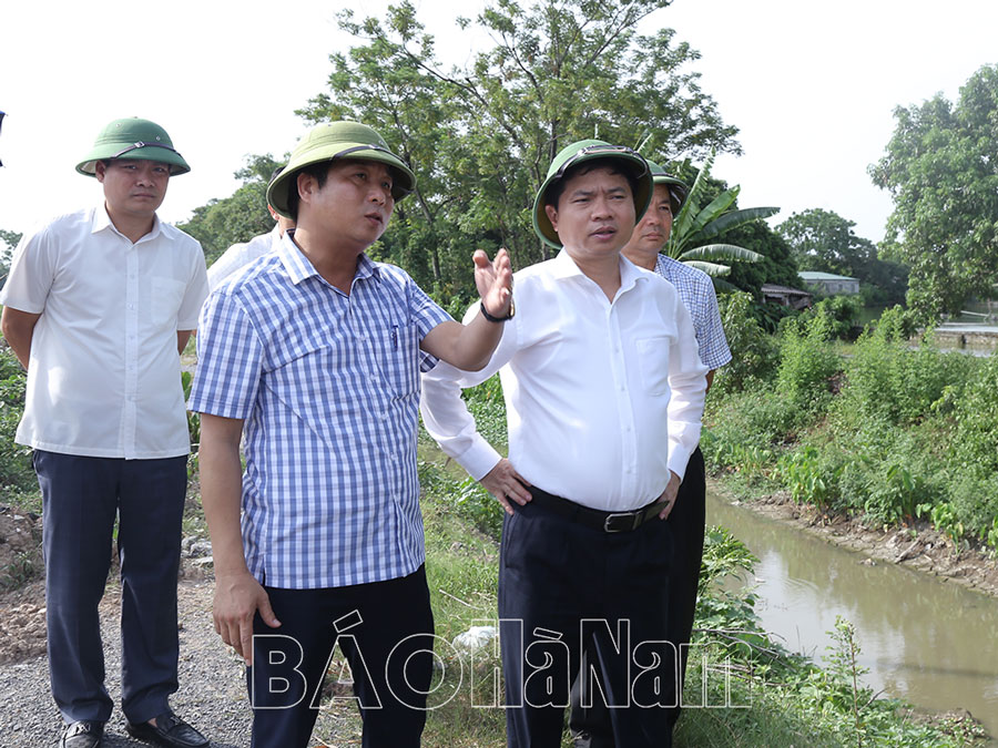 Đồng chí Chủ tịch UBND tỉnh kiểm tra kênh dẫn trong Khu công nghiệp Đồng Văn (thị xã Duy Tiên).