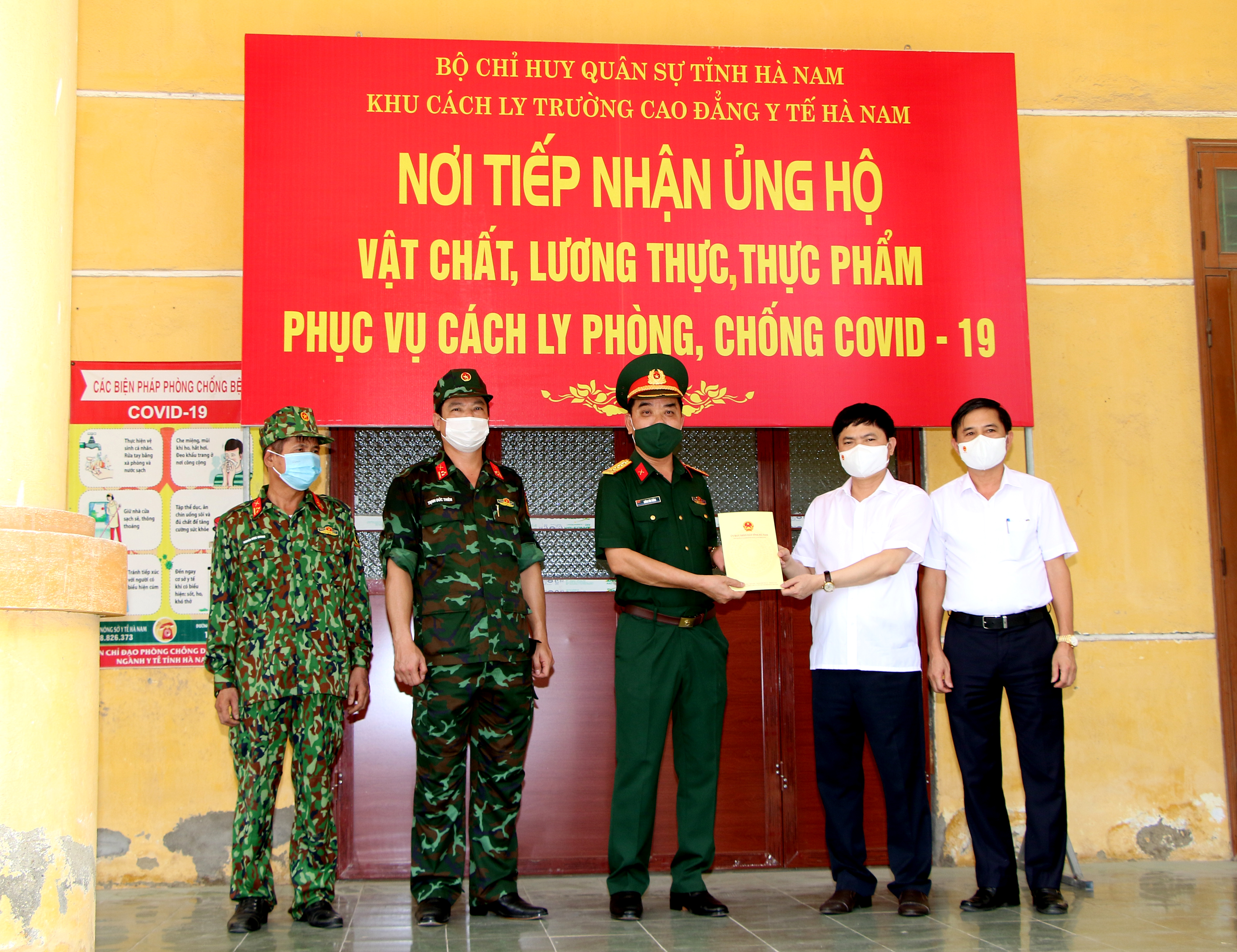 Chủ tịch UBND tỉnh Trương Quốc Huy trao quà cho khu cách ly tập trung Trường Cao đẳng Y tế Hà Nam