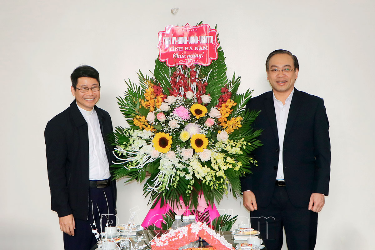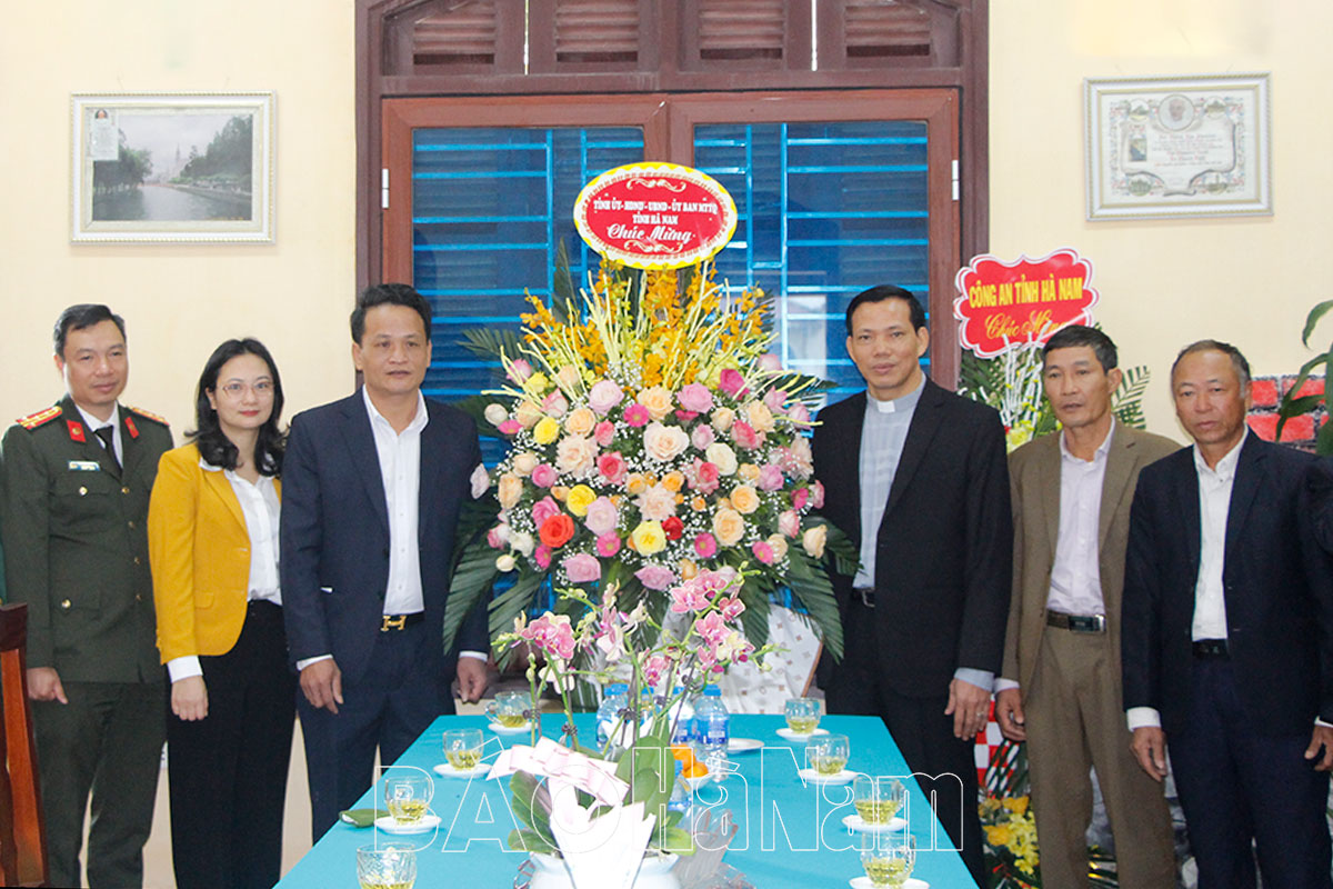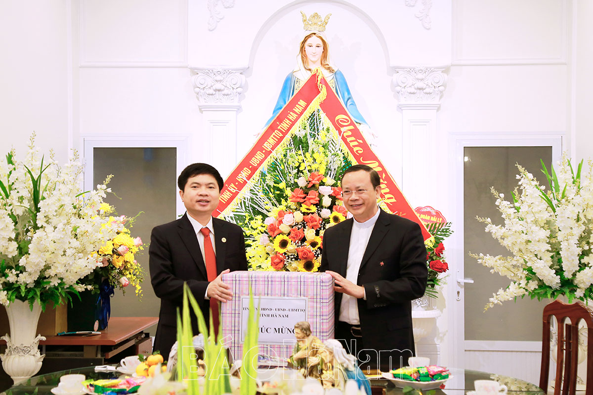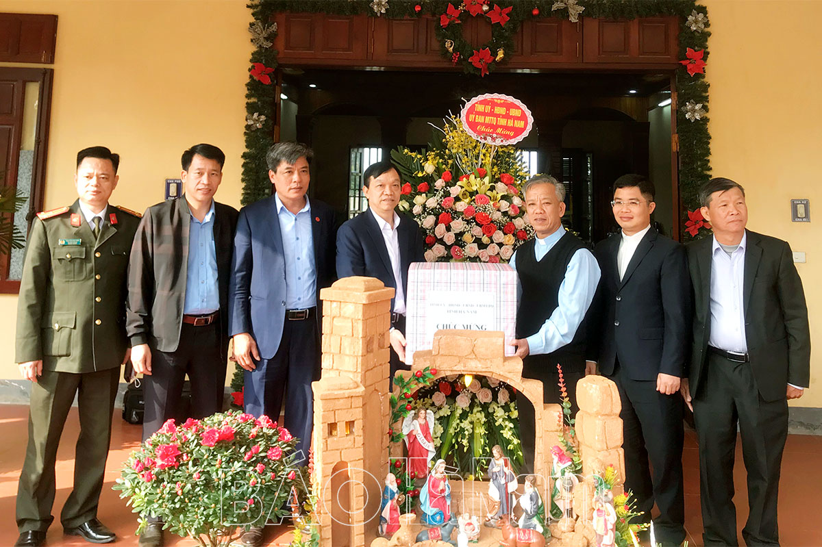 Nhân dịp lễ Giáng sinh, sáng 23/12, đồng chí Trương Quốc Huy, Phó Bí thư Tỉnh ủy, Chủ tịch UBND tỉnh, Trưởng đoàn Đại biểu Quốc hội tỉnh đã đến thăm, chúc mừng tại Giáo xứ Phủ Lý. Cũng trong sáng nay, các đồng chí lãnh đạo thay mặt Tỉnh ủy, HĐND, UBND, Uỷ ban MTTQ tỉnh đã đi thăm, chúc mừng linh mục, bà con giáo dân một số giáo xứ trên địa bàn tỉnh.
