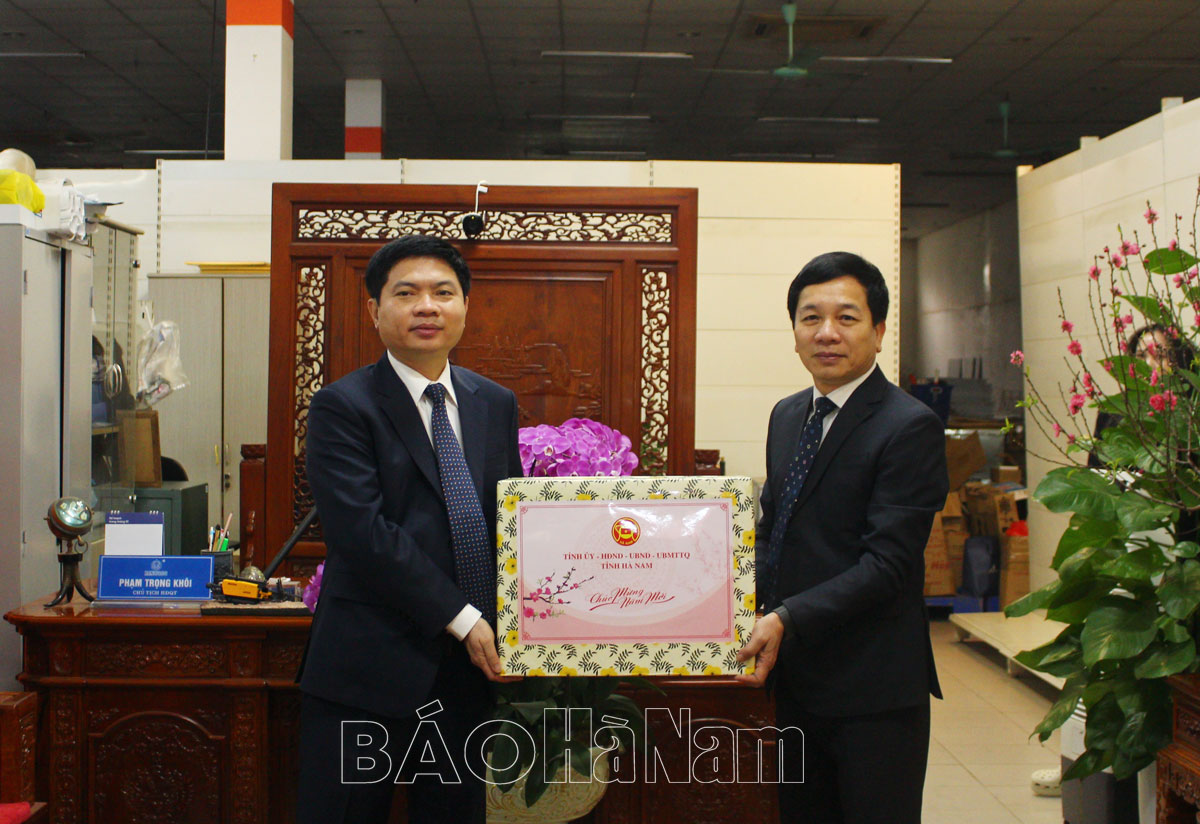 Đến thăm, chúc Tết Công ty Cổ phần Môi trường và Công trình đô thị Hà nam, Công ty Cổ phần Nước sạch Hà Nam, đồng chí Chủ tịch UBND tỉnh Trương Quốc Huy đã thông báo nhanh về tình hình phát triển kinh tế - xã hội của tỉnh trong năm 2022 và nghe các đơn vị báo cáo kết quả công tác, chất lượng cung cấp các dịch vụ trong năm 2022, phương hướng triển khai năm 2023.