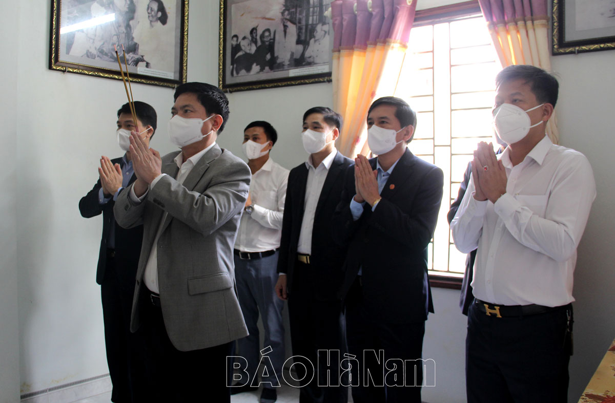 Cùng đi có các đồng chí: Nguyễn Anh Chức, Ủy viên Ban Thường vụ (BTV) Tỉnh ủy, Phó Chủ tịch Thường trực UBND tỉnh; Nguyễn Đức Toàn, Ủy viên BTV Tỉnh ủy, Bí thư Thành ủy Phủ Lý; Trần Xuân Dưỡng, Tỉnh ủy viên (TUV), Phó Chủ tịch UBND tỉnh; lãnh đạo một số sở, ngành.