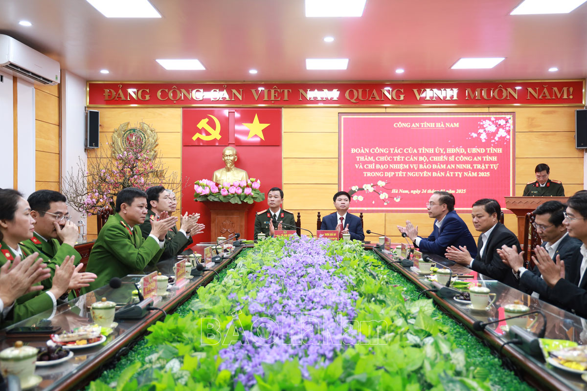 Nhân dịp chuẩn bị đón Xuân Ất Tỵ, sáng 24/1 (tức 25 tháng Chạp), đồng chí Trương Quốc Huy, Phó Bí thư Tỉnh ủy, Chủ tịch UBND tỉnh, Trưởng Đoàn đại biểu Quốc hội (ĐBQH) tỉnh đến thăm, chúc Tết cán bộ, chiến sỹ Công an tỉnh. Cùng đi có đồng chí Đặng Thanh Sơn, Ủy viên Ban Thường vụ Tỉnh ủy, Phó Chủ tịch Thường trực HĐND tỉnh; lãnh đạo Văn phòng UBND tỉnh, Văn phòng Đoàn ĐBQH và HĐND tỉnh.