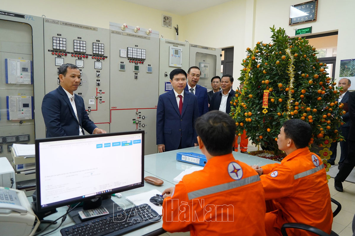 Đồng chí Chủ tịch UBND tỉnh Trương Quốc Huy thăm, động viên, tặng quà Tết cán bộ, người lao động tham gia trực Tết tại Công ty Điện lực Hà Nam.